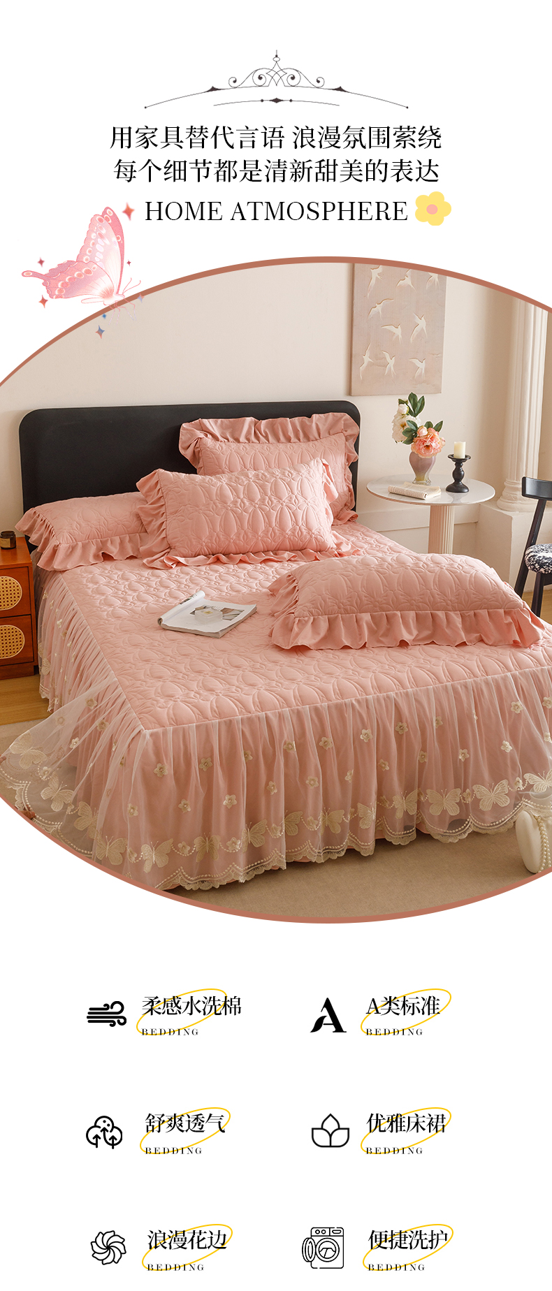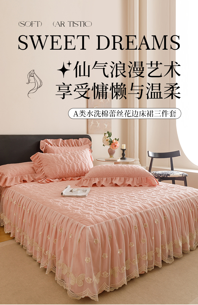 当前位置: 91家纺网 > 商品网购 > 床品套件 > 四件套 > 牛奶绒四件套 > 好儿喜家纺 2025新款A类水洗棉床裙三件套-芳菲系列 芳菲-豆沙