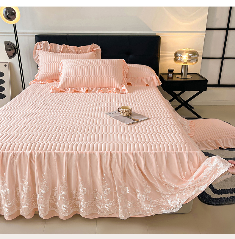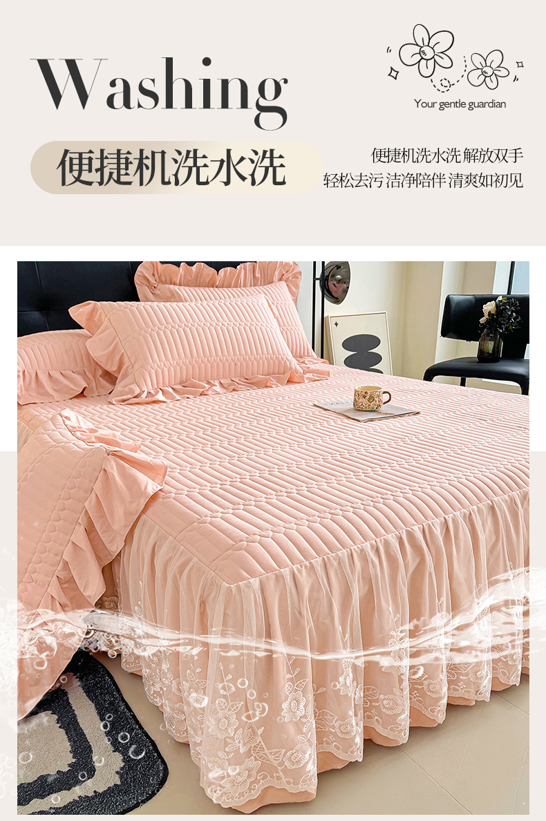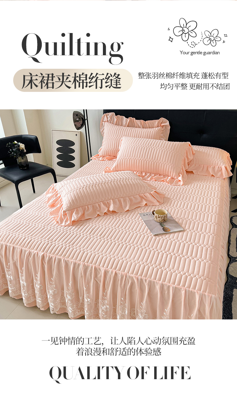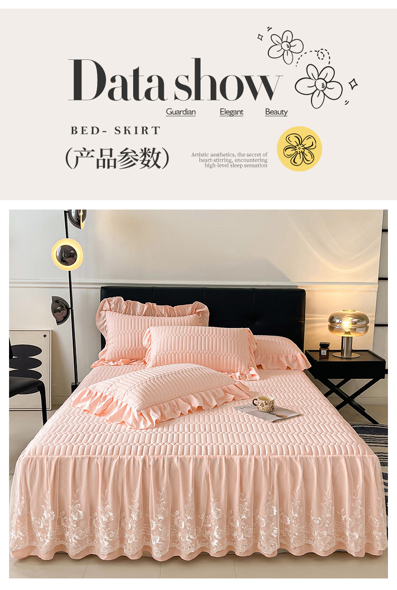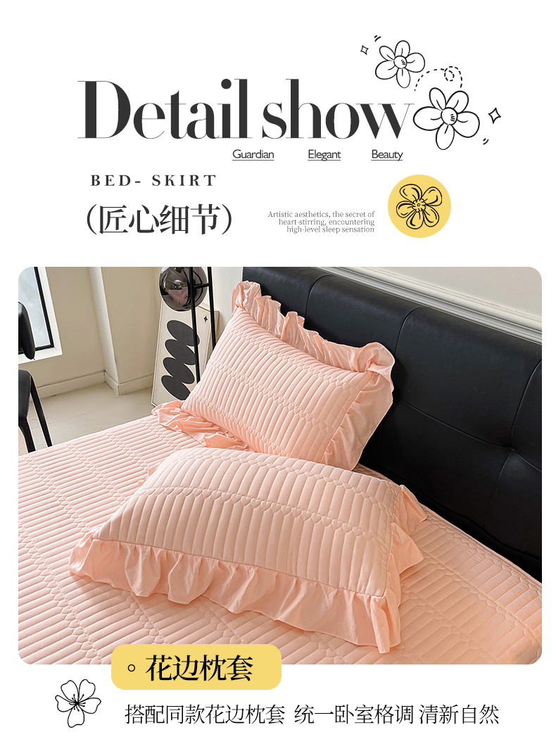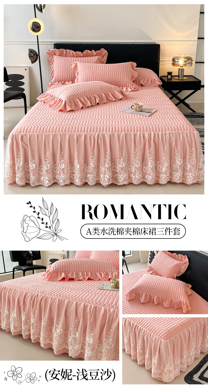 当前位置: 91家纺网 > 商品网购 > 床品套件 > 四件套 > 牛奶绒四件套 > 好儿喜家纺 2025新款A类水洗棉床裙三件套-安妮系列 安妮-浅粉