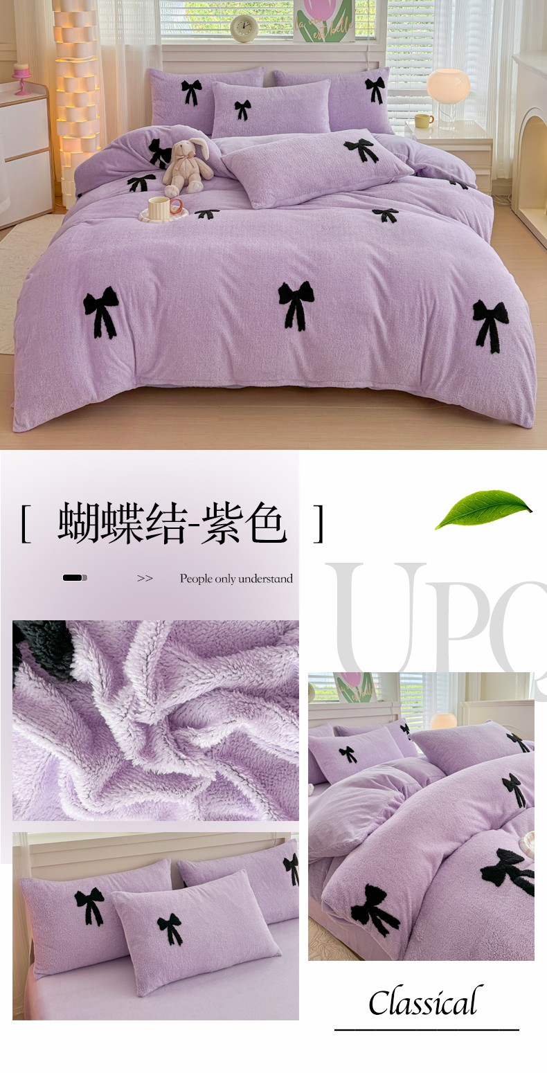 当前位置: 91家纺网 > 商品网购 > 床品套件 > 四件套 > 其它四件套 > 小叮当家纺仓储工厂店 2025新款舒棉绒提花绣花四件套 舒棉绒提花-蝴蝶结粉色