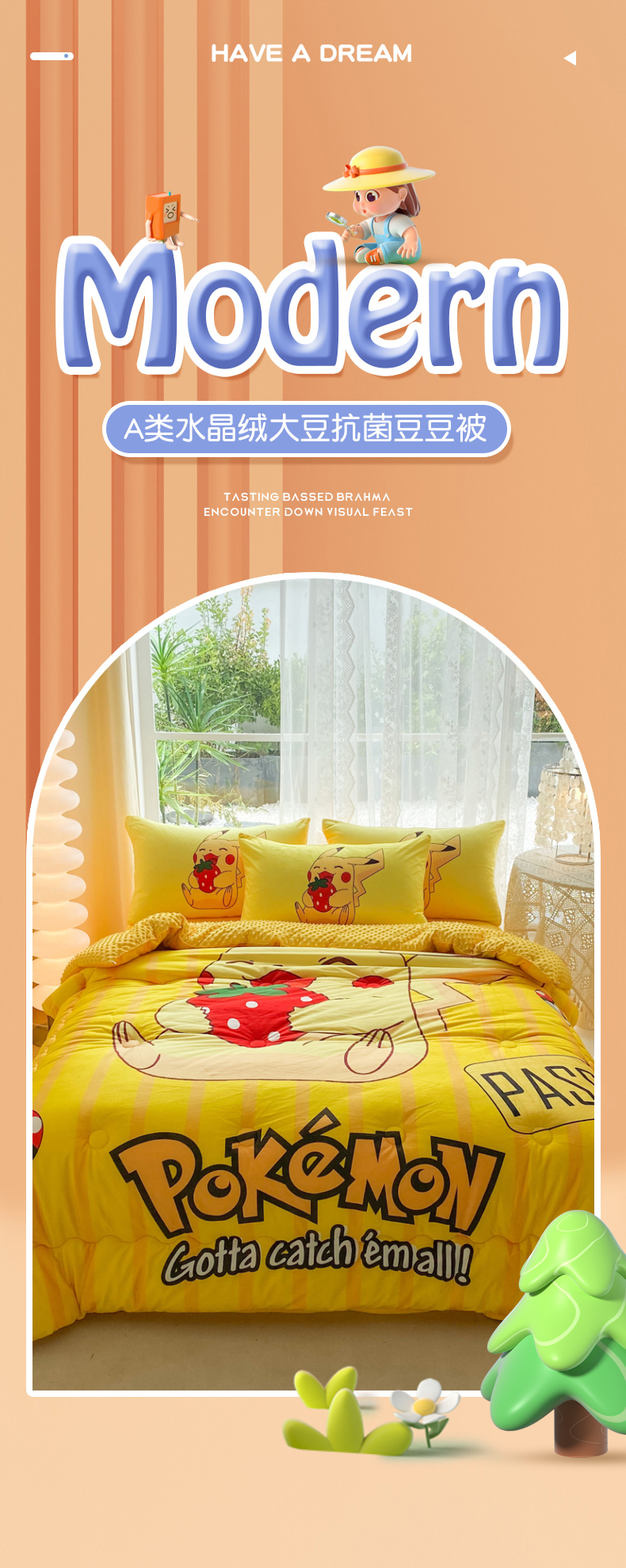• 91家纺网 家纺一手货源 找家纺 一电 跨境电商可真空儿童豆豆被幼儿园秋冬被芯宝宝婴儿午睡小盖被盖毯小宝宝四季通用 草莓皮卡丘