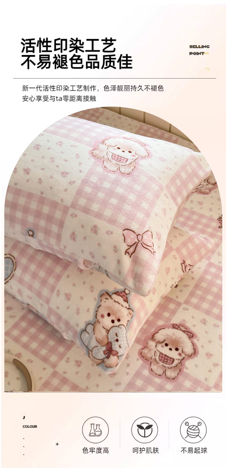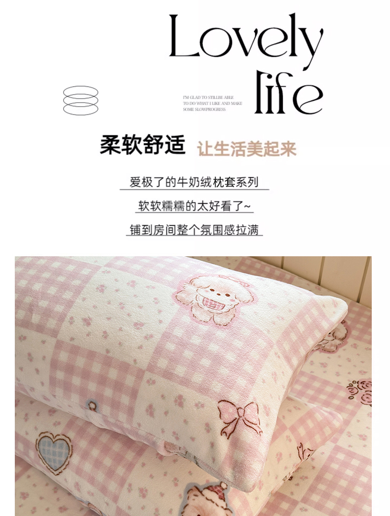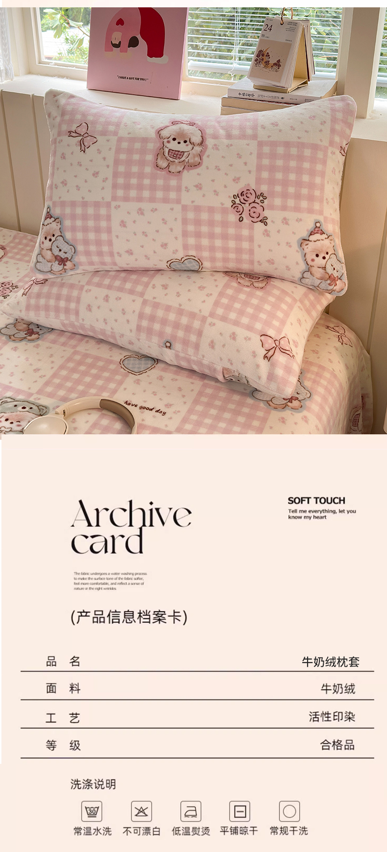 丽美人家纺 2025新款牛奶绒小版枕套 萌熊日记