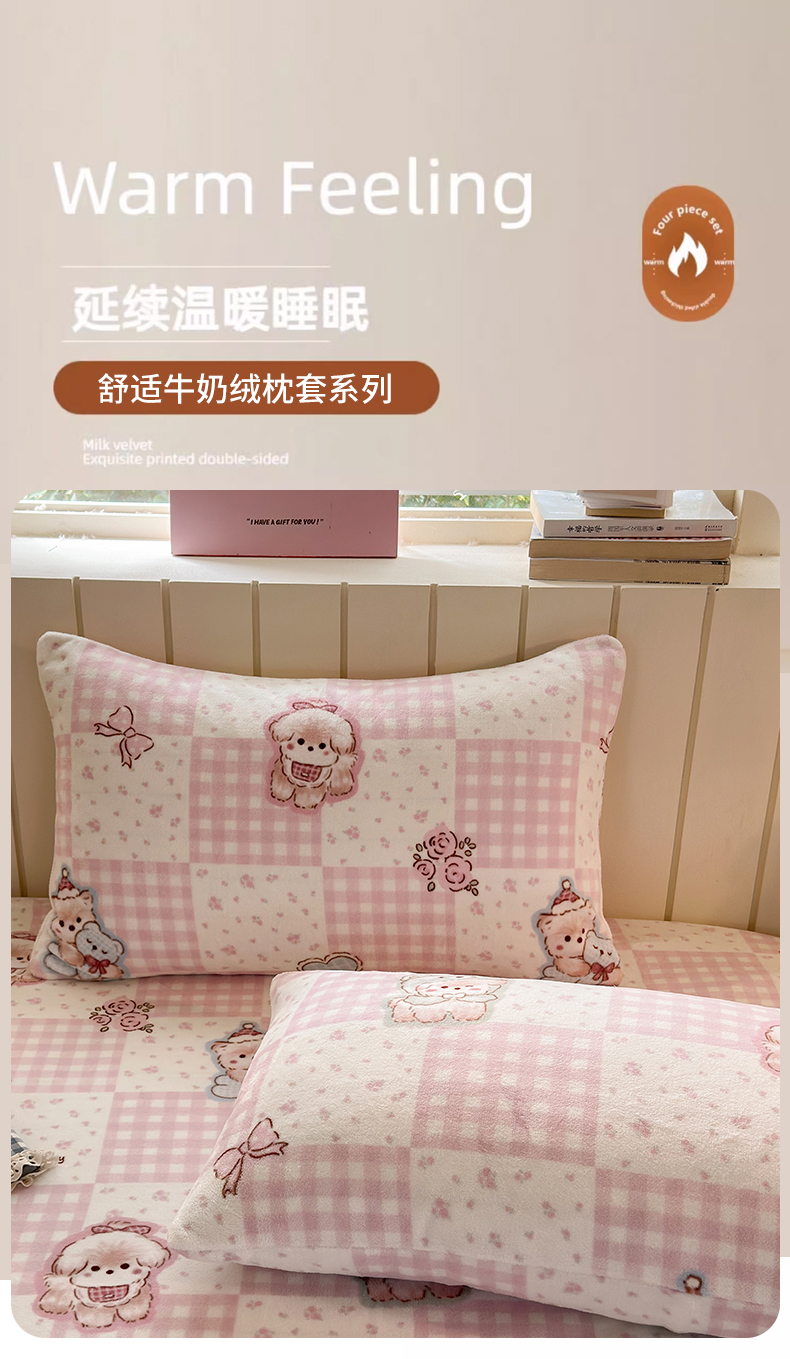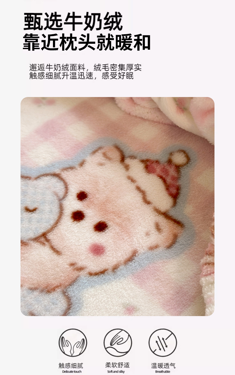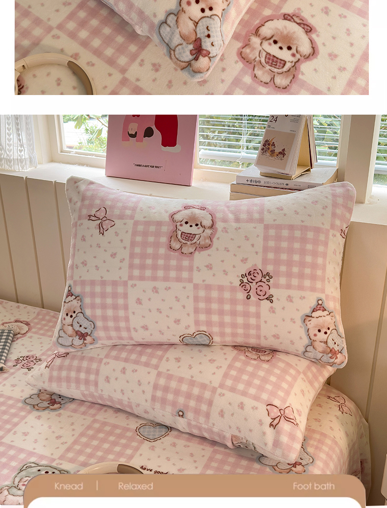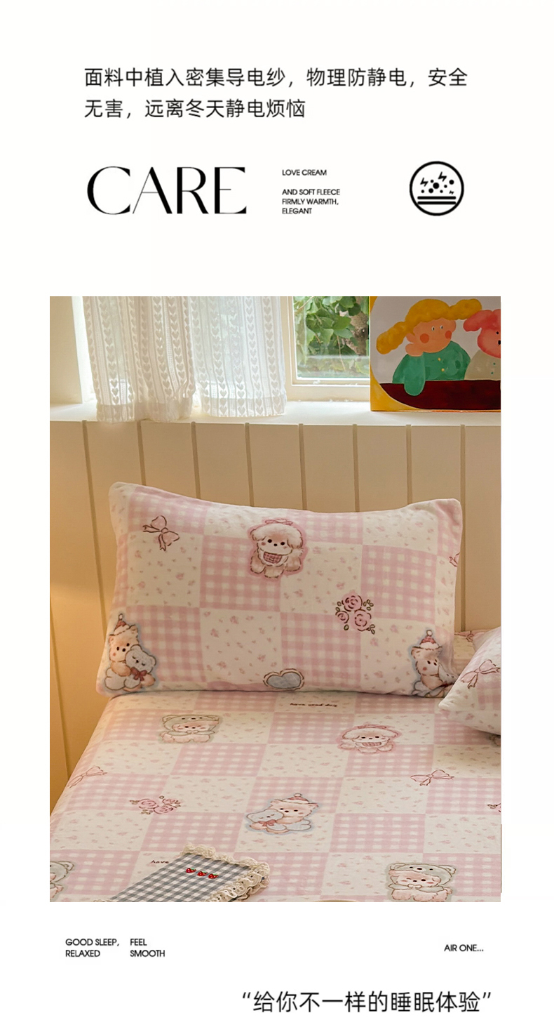 丽美人家纺 2025新款牛奶绒小版枕套 萌熊日记