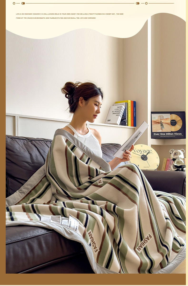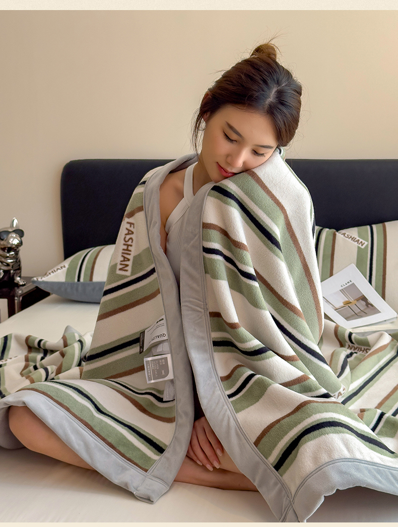 (总)丝幔 2025新款日式牛奶绒多功能毛毯三件套,宝石蓝,宾利蓝,复古棕,灰大格,蓝大格,蓝小格,绿大格,暖粉,太空灰,银灰