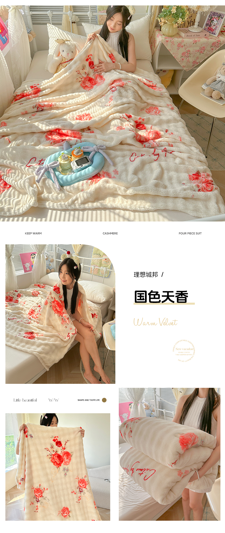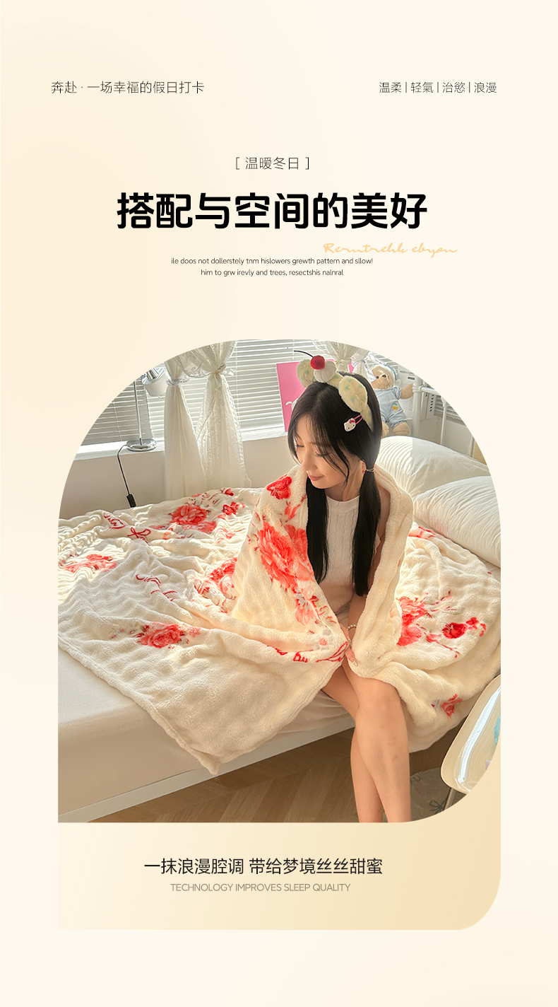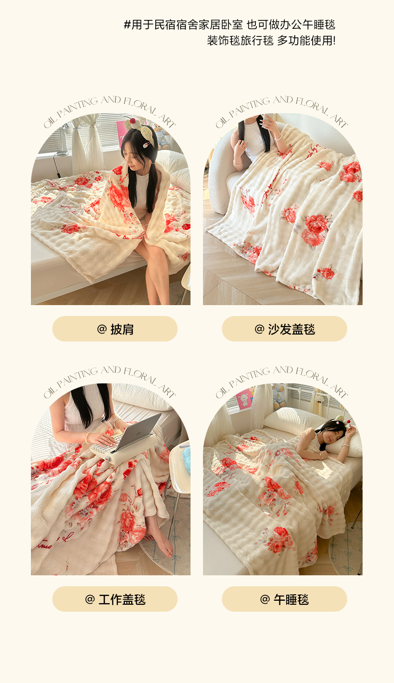 商品名称:韩巢家纺 2025新款高克重泡泡绒毛毯多功能牛奶绒毯子支持跨境电商 国色天香