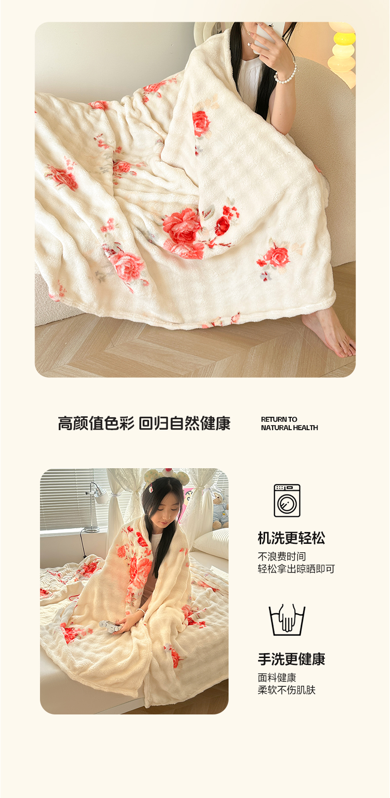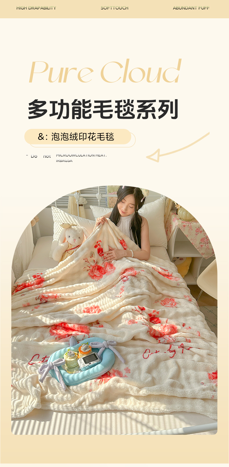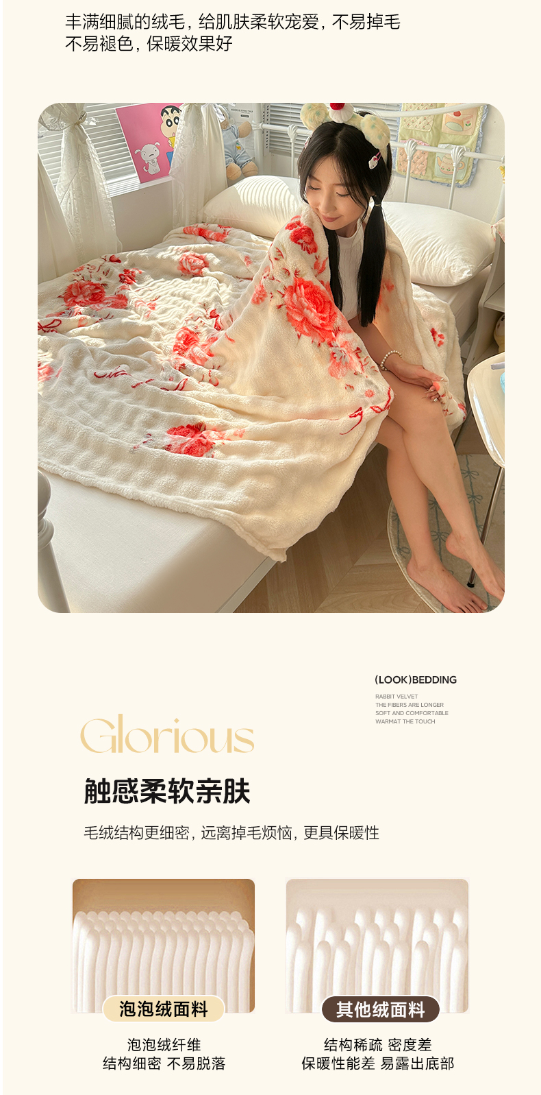 商品名称:韩巢家纺 2025新款高克重泡泡绒毛毯多功能牛奶绒毯子支持跨境电商 国色天香