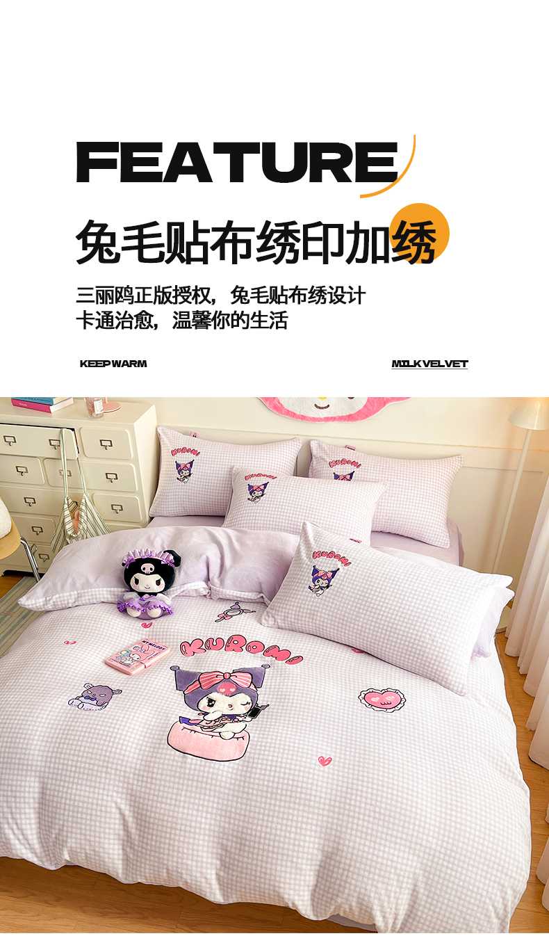 当前位置: 91家纺网 > 商品网购 > 床品套件 > 四件套 > 牛奶绒四件套 > 金爱家 2025新款A类三丽鸥授权Kitty兔毛贴布绣毛巾绣印加绣卡通少女加厚牛奶绒系列四件套 绒贴布绣- 蓝格布丁狗
