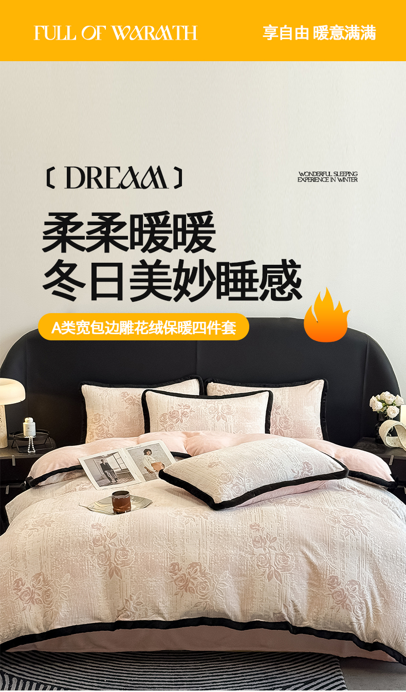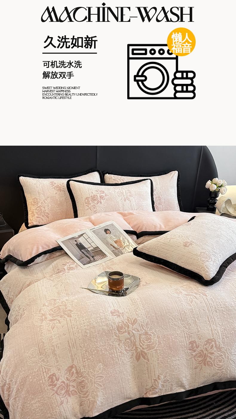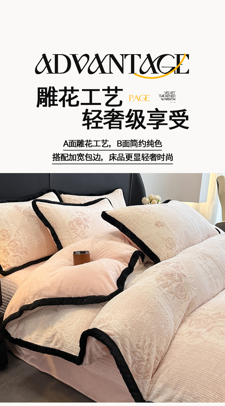 当前位置: 91家纺网 > 商品网购 > 床品套件 > 四件套 > 其它四件套 > 懒猫家纺 2025新款宽包边雕花绒四件套 寻觅花影