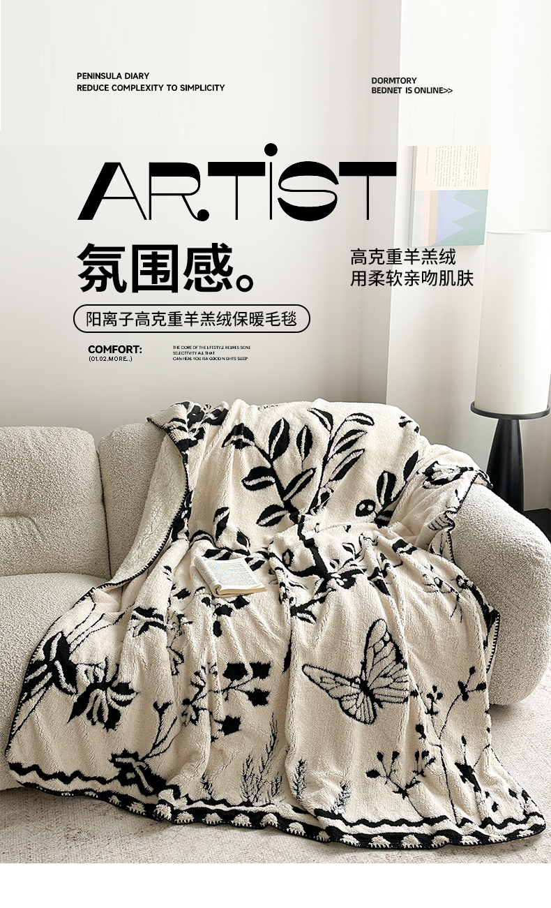 商品名称:小叮当家纺仓储工厂店 买家秀 爆款花型2025新款阳离子高克重羊羔绒保暖毯子外贸毯子 幻蝶花韵
