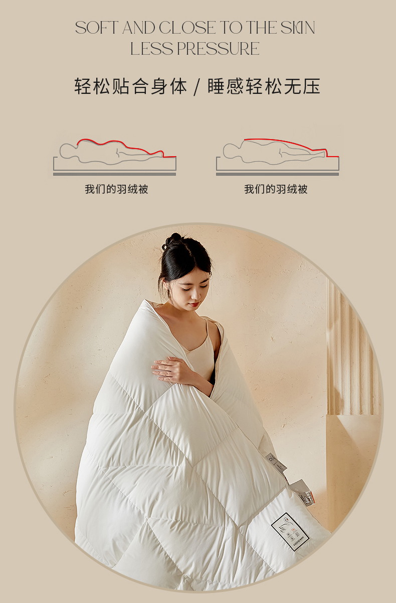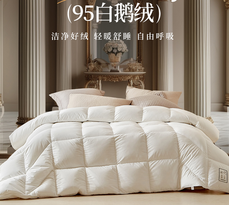 商品名称:(总)暖羽屋羽绒馆 2025新款纯色95白鹅绒芯 人体工学鹅绒被子双人加厚2米冬被 春秋被被子被芯