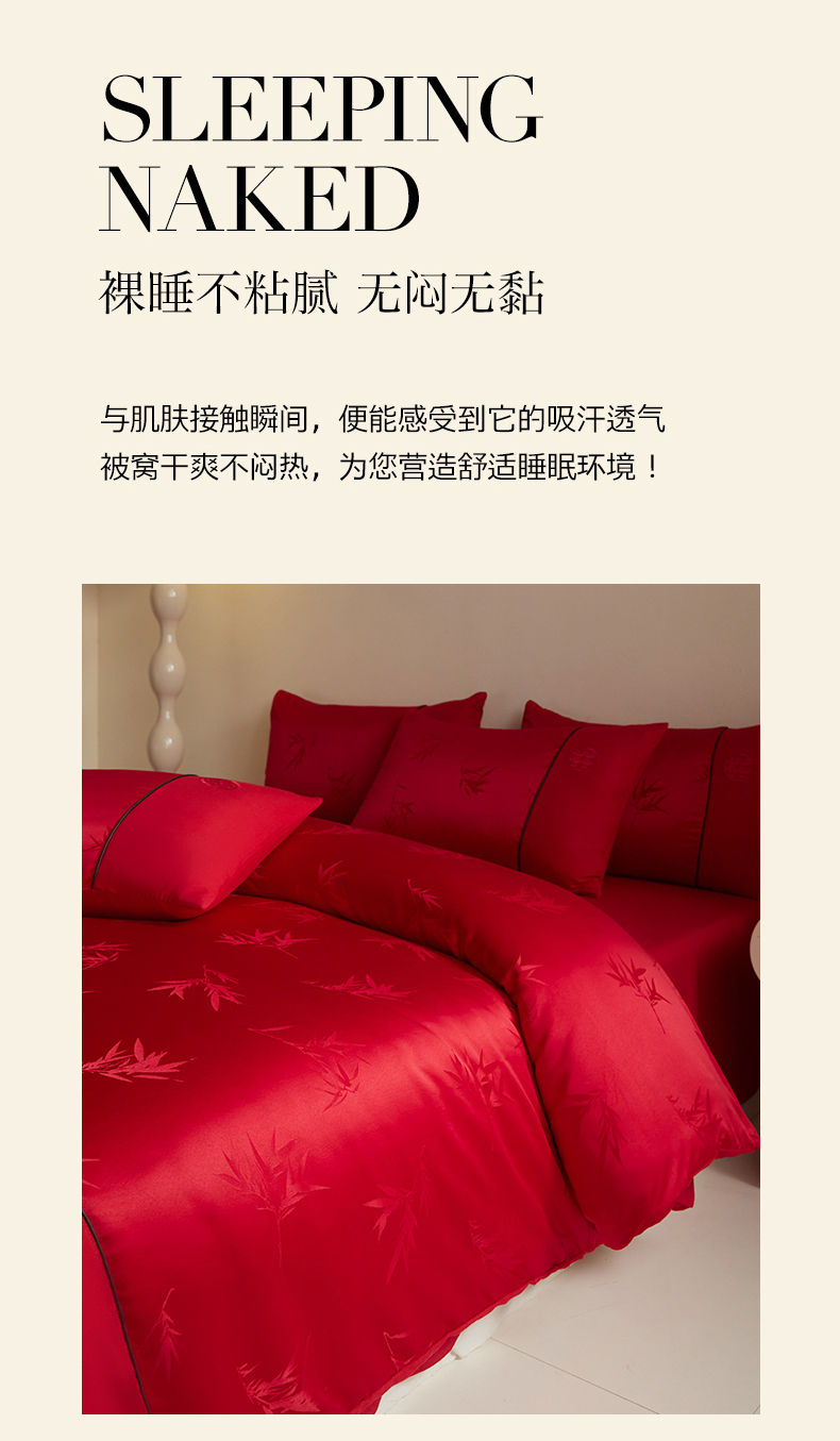 (总)千希家纺 2025新款麻绳拼接120g斜纹磨毛提花婚庆系列四件套,蝶恋花,竹恋,竹影清梦