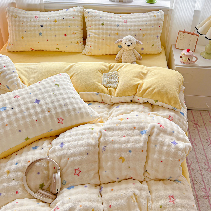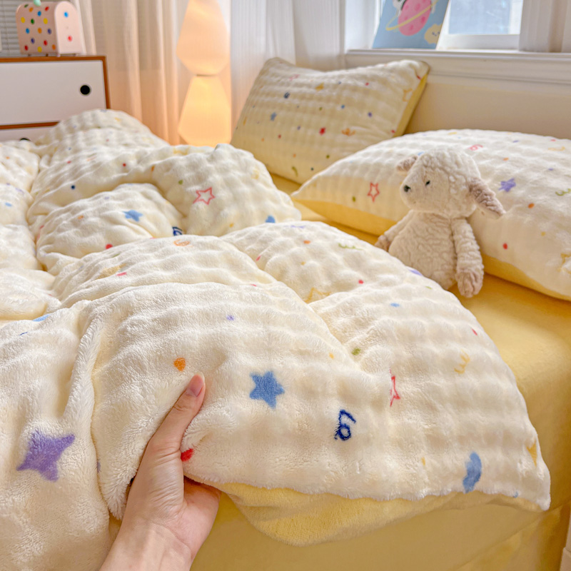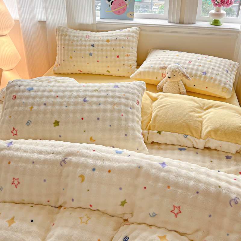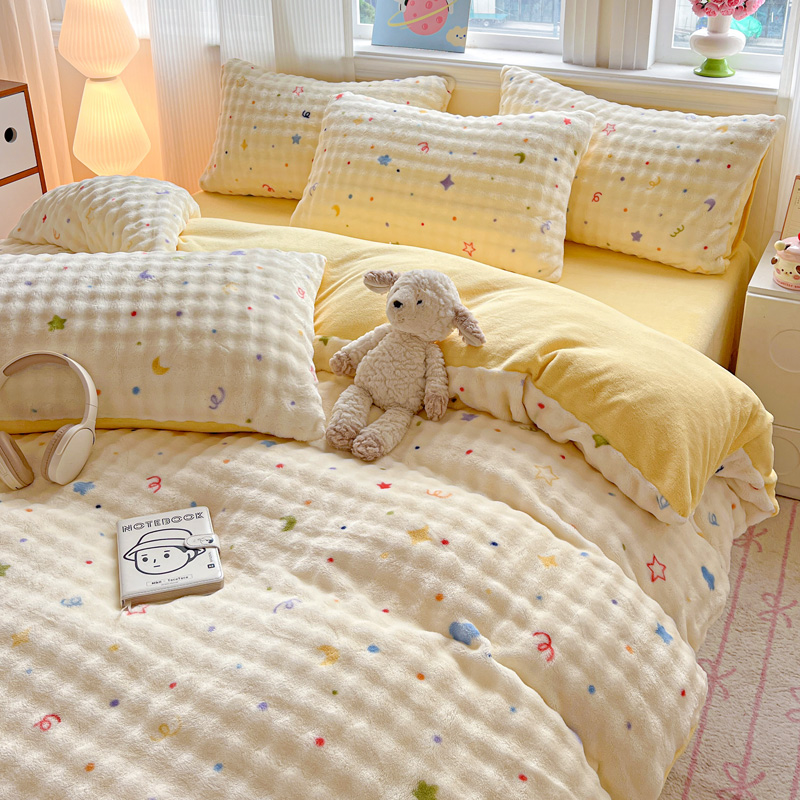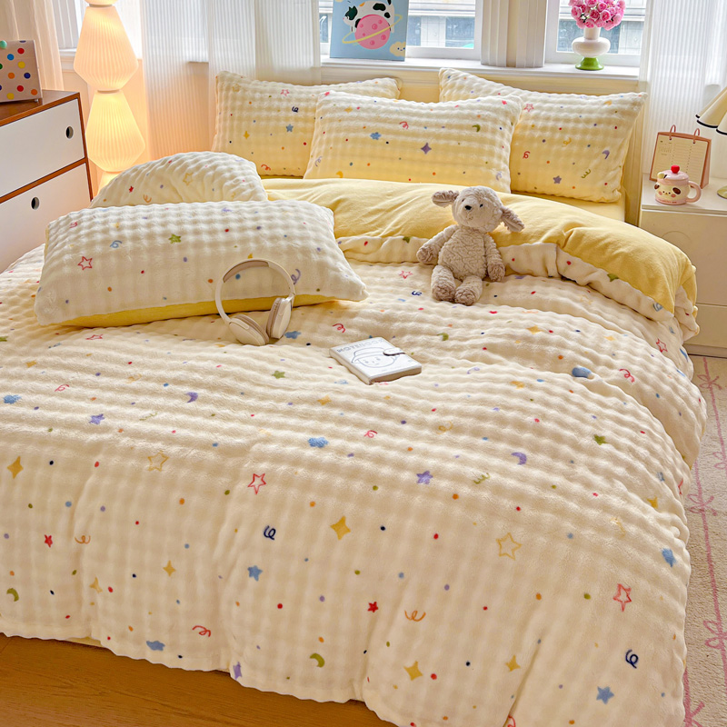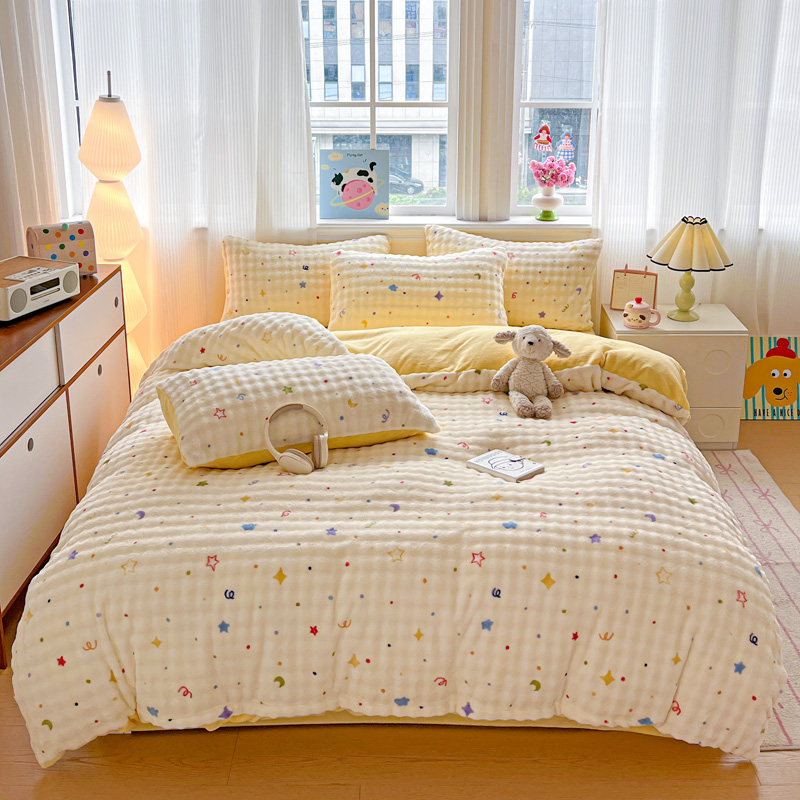 商品名称:一比一 2025新款亲肤舒适保暖泡泡绒牛奶绒四件套 奶油起司