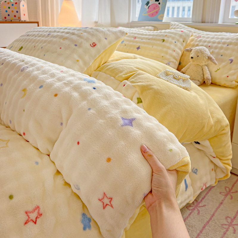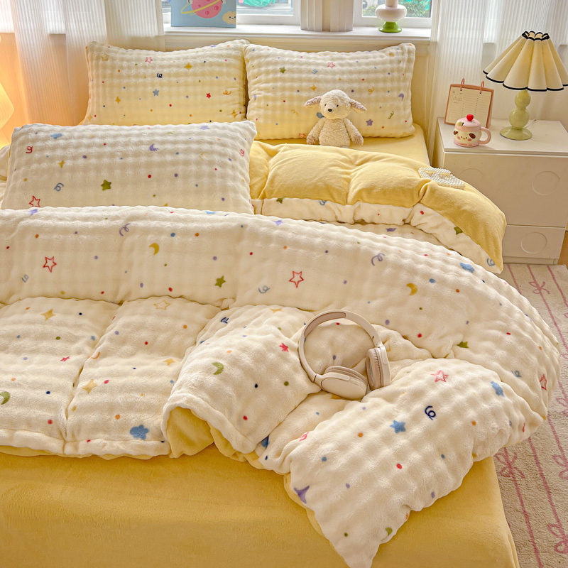 一比一 2025新款亲肤舒适保暖泡泡绒牛奶绒四件套 奶油起司