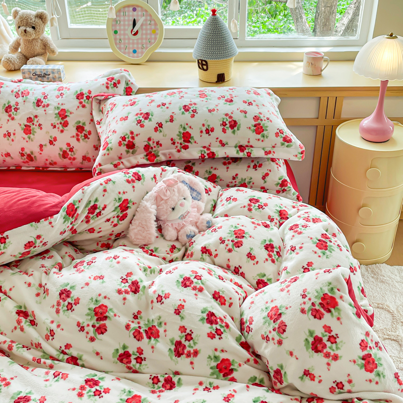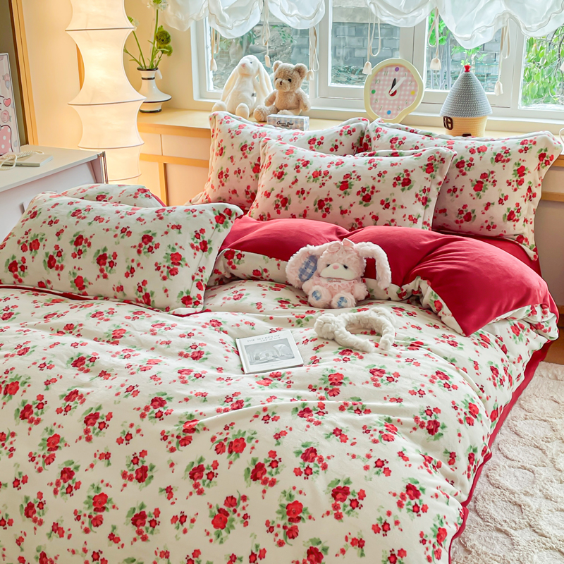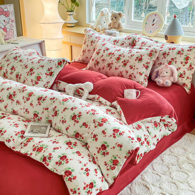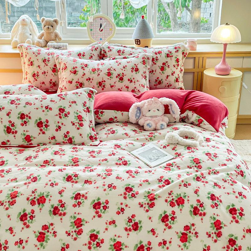 (总)一比一家纺 2025新款亲肤舒适双面牛奶绒床盖款四件套,妖姬,爱心灰,胭脂,爱心紫,豹纹KT咖,复古小花,黑珍珠,可可奶咖,蔷薇粉,紫波点,丝绒蛋糕,樱桃格趣,枝枝兔,朵缦,樱桃派,黑糖珍珠,赫本,豆蔻年华