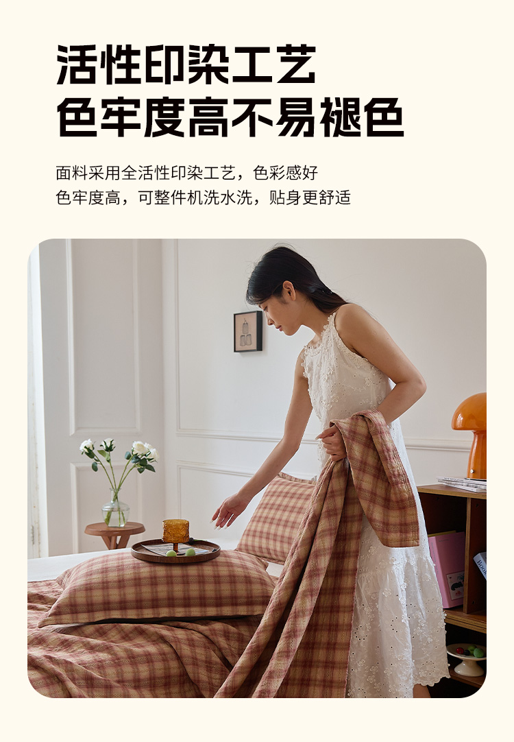 (总)沐瑟家纺 2025新款简约风多功能纱布盖毯纱布毯子毛巾被床盖沙发巾单毯枕巾枕套三件套,H本色,H橙色,H咖色,大马士革本色