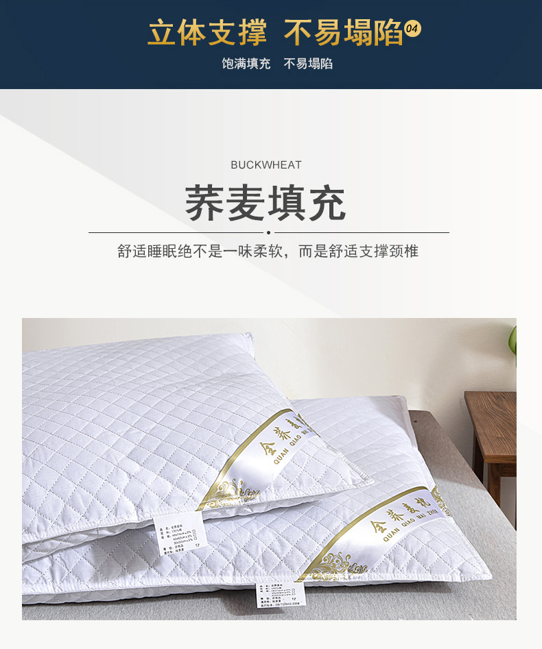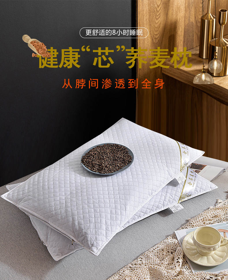 兴丝露枕芯 全棉荞麦枕芯 全荞麦壳枕芯 全棉绗绣荞麦枕头 常规成人枕头 保健护颈枕 夏凉枕头