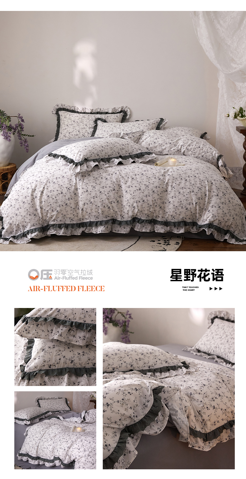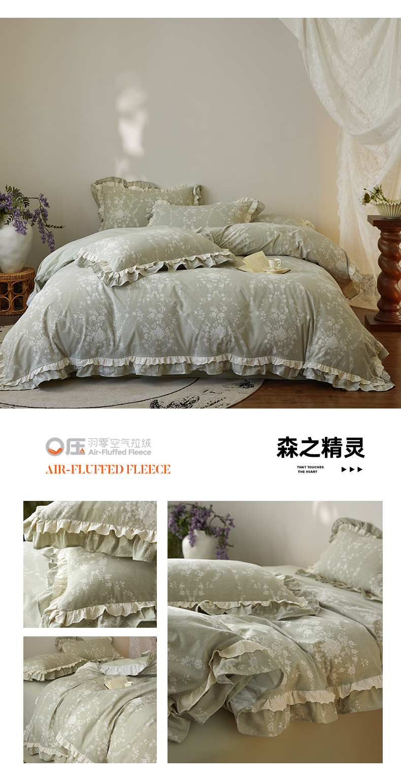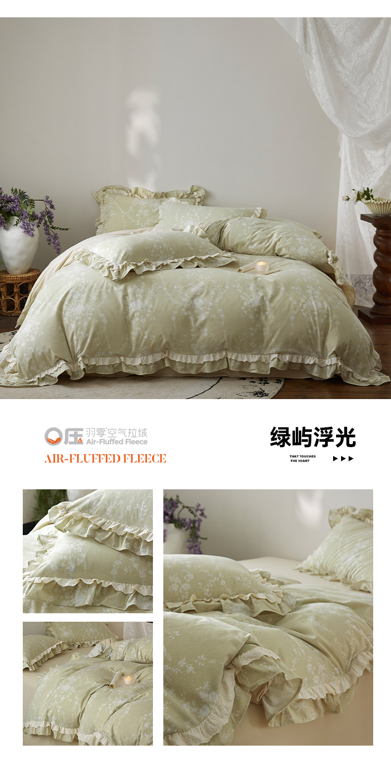 金奇达家纺 2025新款A类保暖羽零™空气拉绒加厚法式荷叶边四件套热肤膜【森屿集】(会员减50元) 热肤膜【森屿集】系列,标准号全网控价(折后券后)不低于228元 绿屿浮光