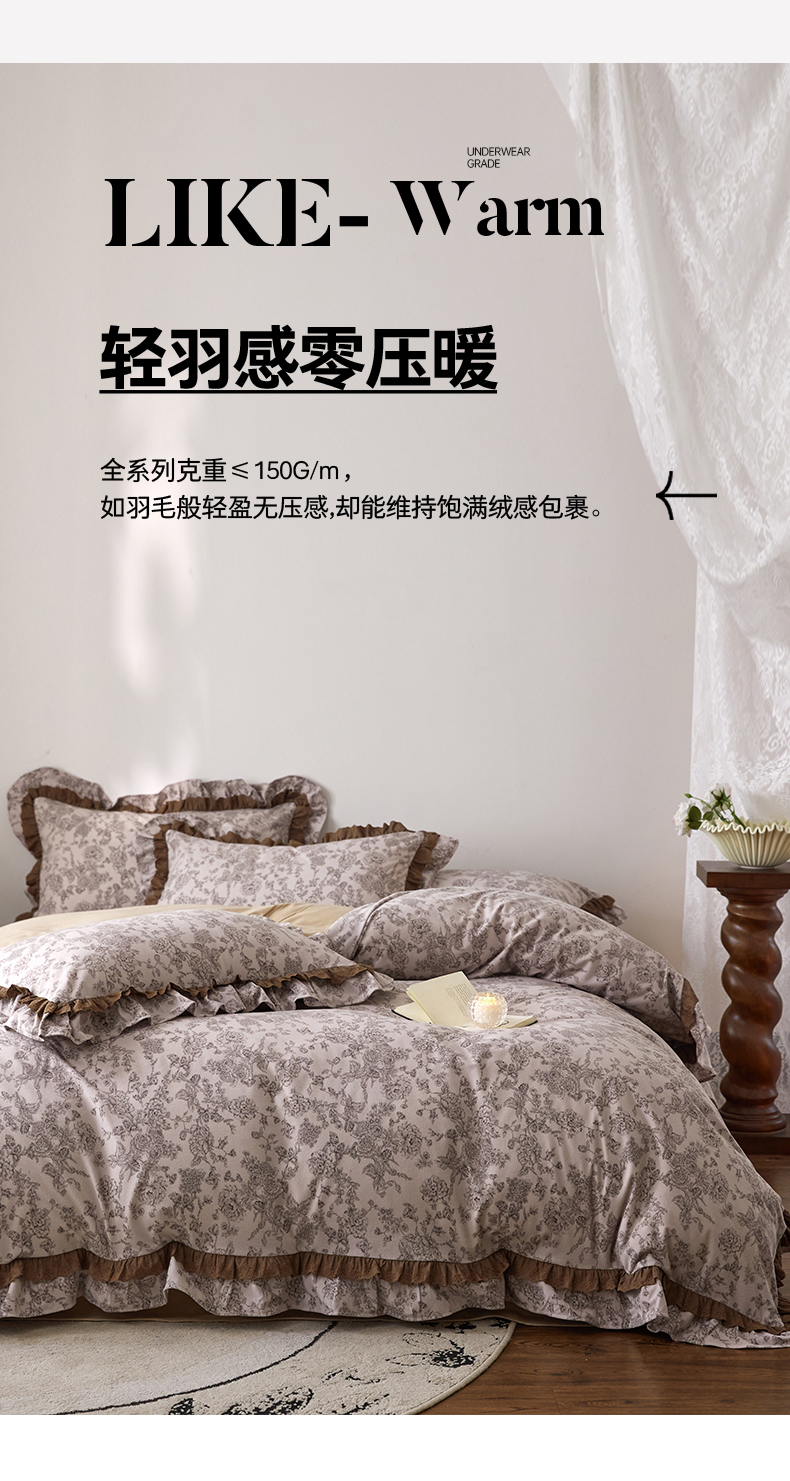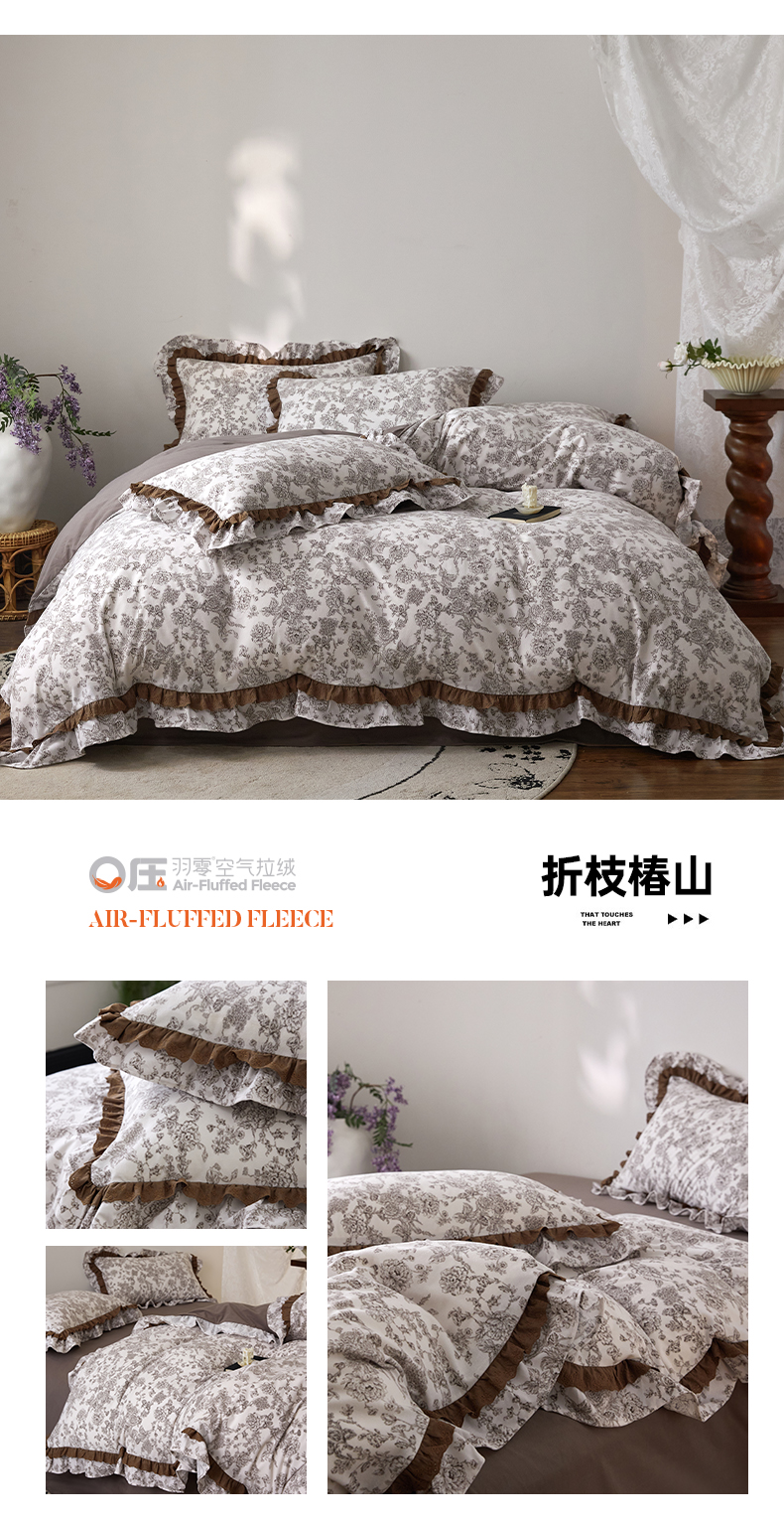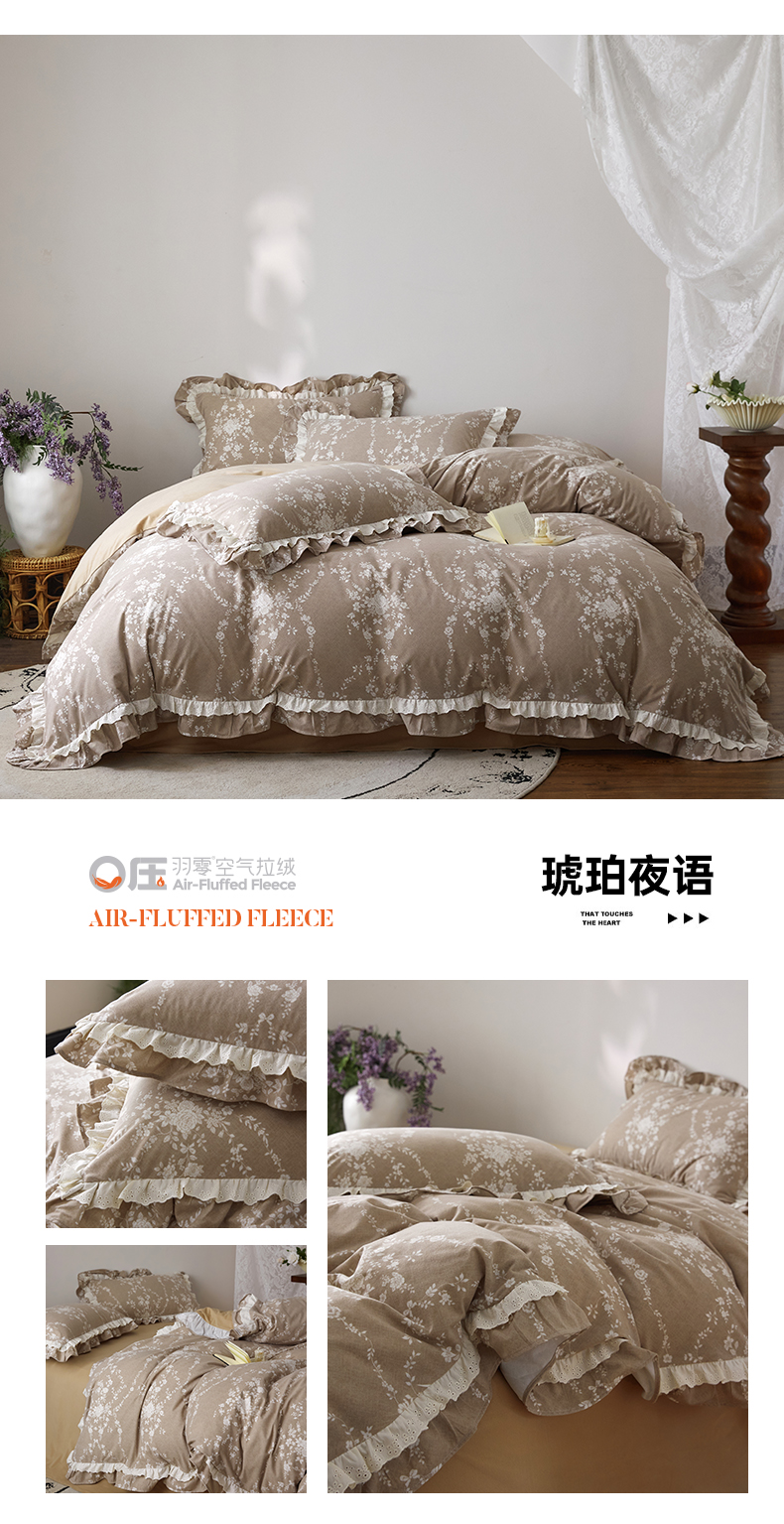金奇达家纺 2025新款A类保暖羽零™空气拉绒加厚法式荷叶边四件套热肤膜【森屿集】(会员减50元) 热肤膜【森屿集】系列,标准号全网控价(折后券后)不低于228元 绿屿浮光