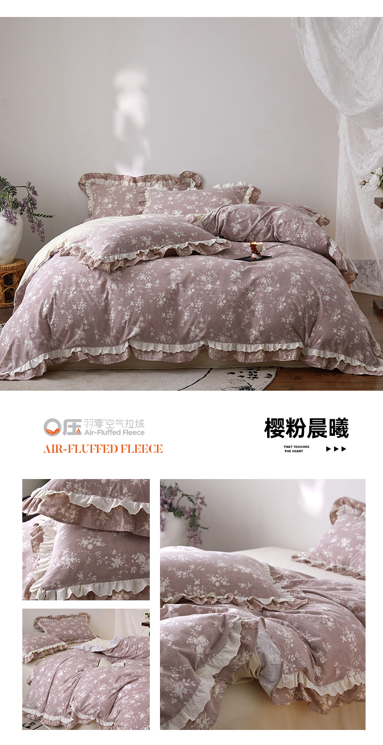 (总)金奇达家纺 2025保暖新款羽零™空气拉绒加厚荷叶边四件套热压纹【香榭丽织梦】 (会员减45元)全网控价标准号(折后券后)不低于199元,香榭丽织梦-浅紫,香榭丽织梦-温玉,香榭丽织梦-杏色,香榭丽织梦-珍珠白