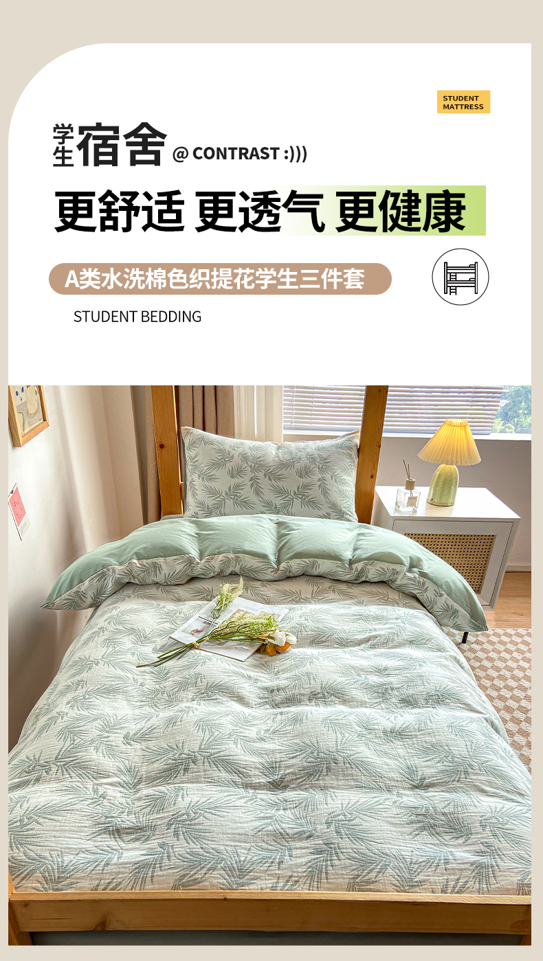 商品名称:宜代光年 2025新款60S水洗棉提花学生季三件套 居有竹