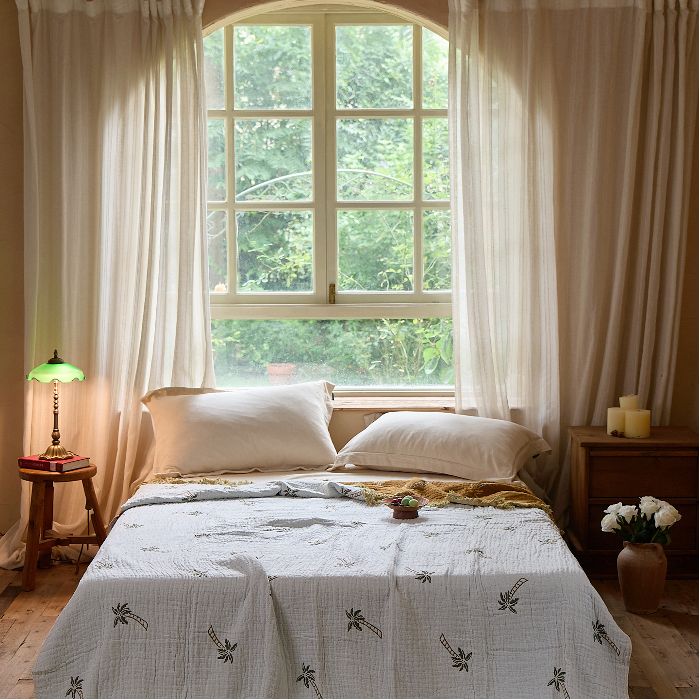 (总)沐瑟家纺 2025新款全棉纱布细纱布大床盖毯子床盖三件套LV系列,LV咖色,春意浓,玫瑰之约,小天鹅-绿,绽放-红色,绽放-姜黄