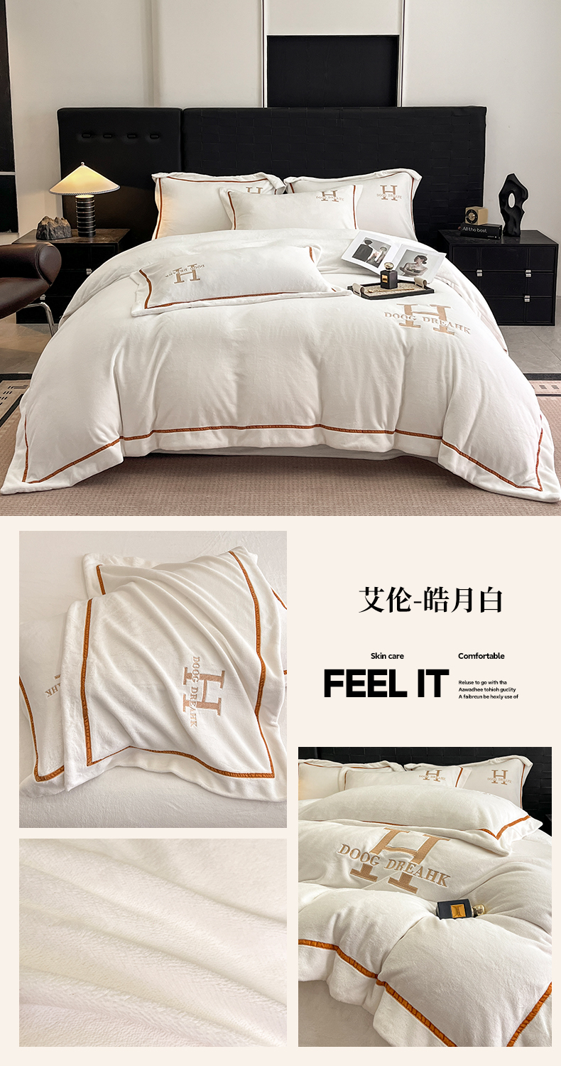 当前位置: 91家纺网 > 商品网购 > 床品套件 > 四件套 > 牛奶绒四件套 > 露梦家纺 2025新款A类牛奶绒工艺款刺绣四件套-艾伦系列(提供买家秀) 艾伦-皓月白