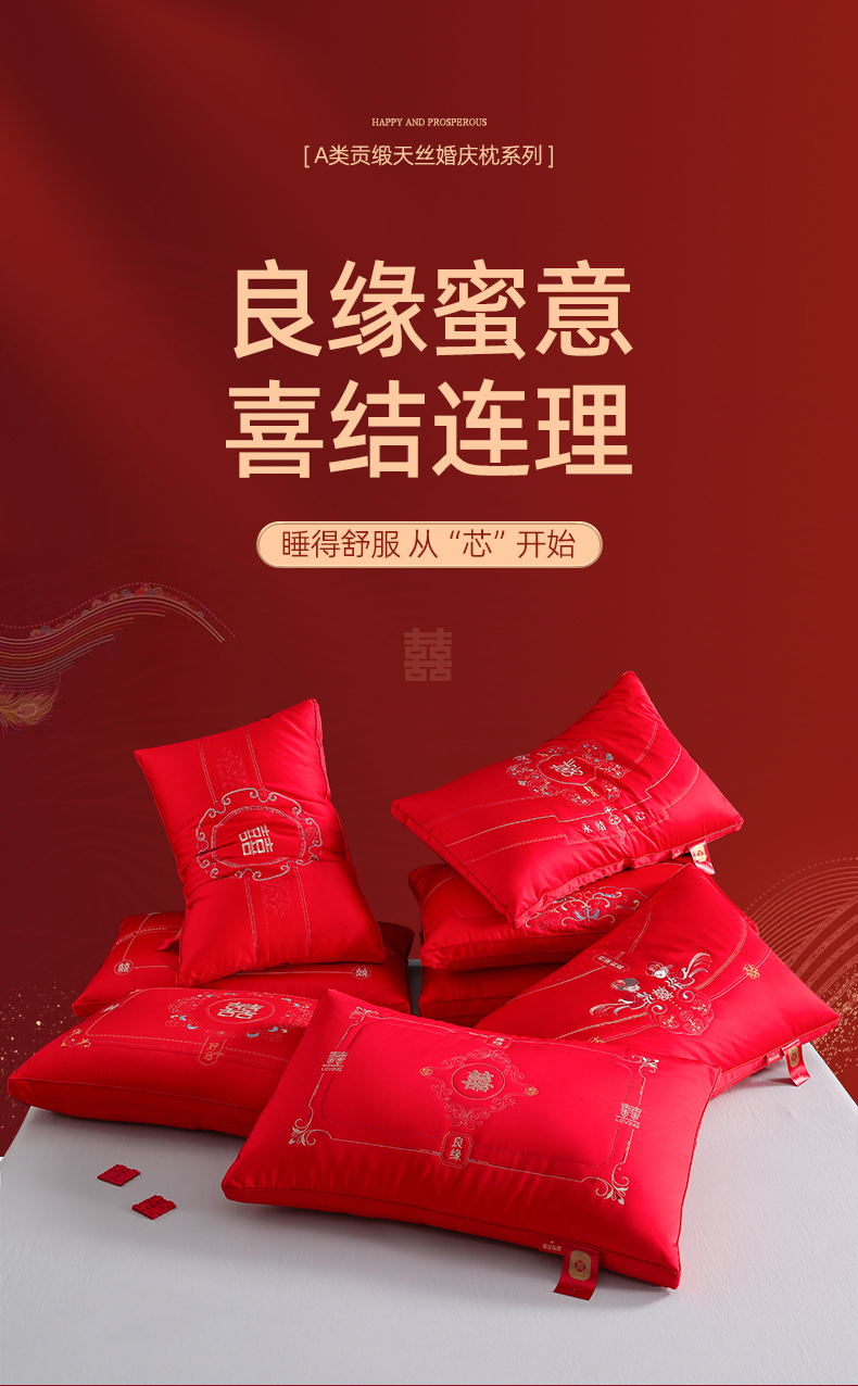 当前位置: 91家纺网 > 商品网购 > 枕头/枕芯/保健枕/颈椎枕 > 枕头枕芯 > 织布人 2025新款枕芯轻奢A类贡缎天丝刺绣婚庆枕头大红结婚专用枕芯 A类贡缎天丝枕-喜结良缘