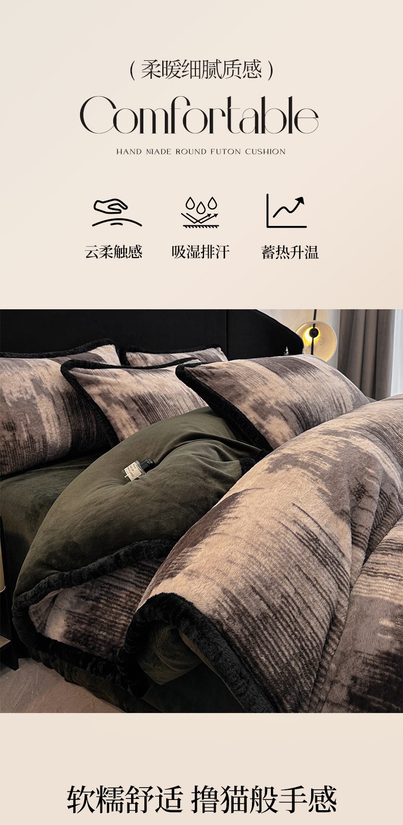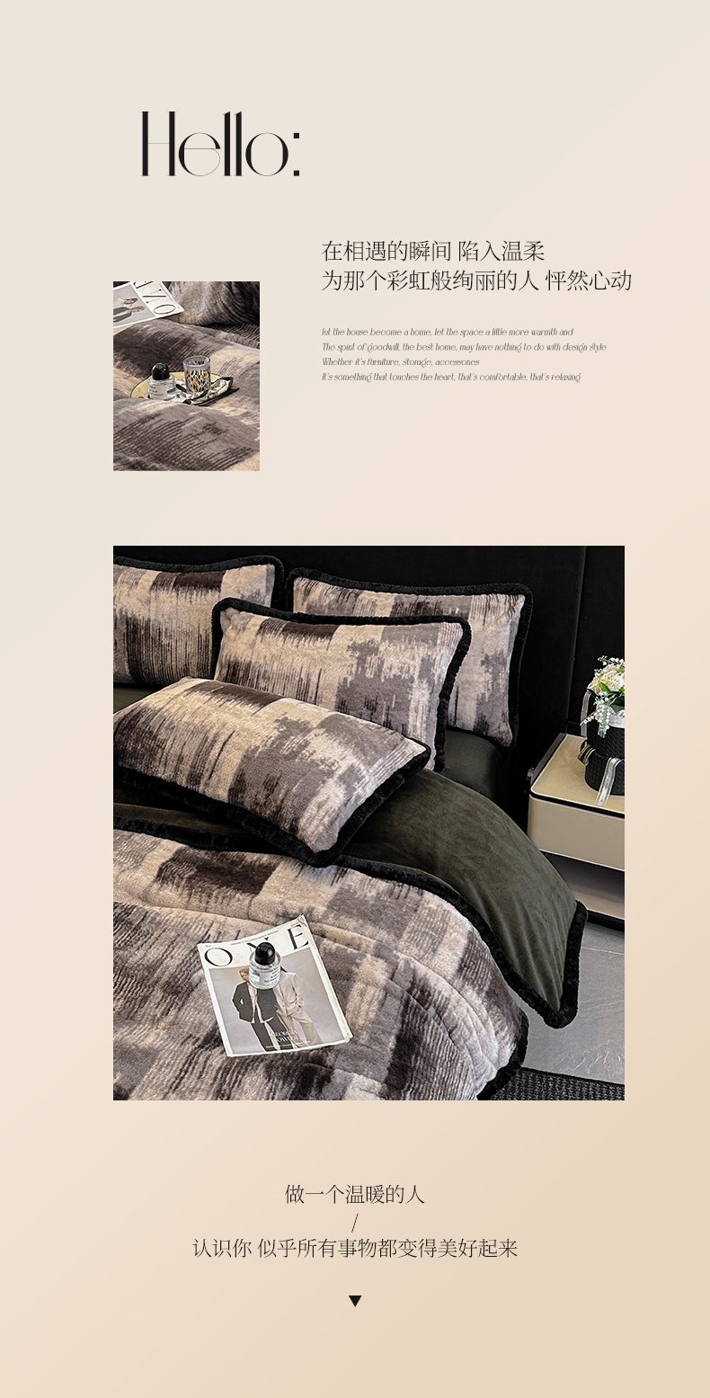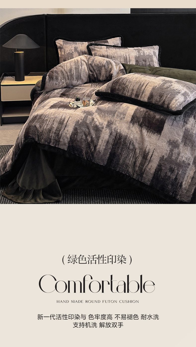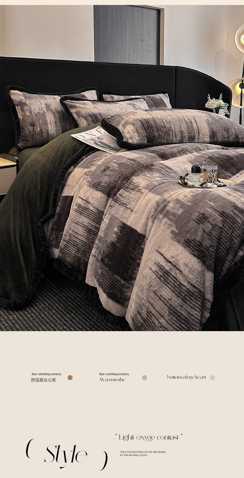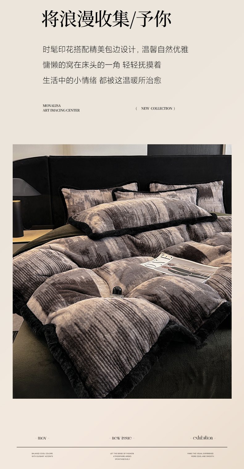 商品名称:畅畅家纺 2025新款高克重新款冬季加厚兔毛绒包边款床单床笠四件套 灵感