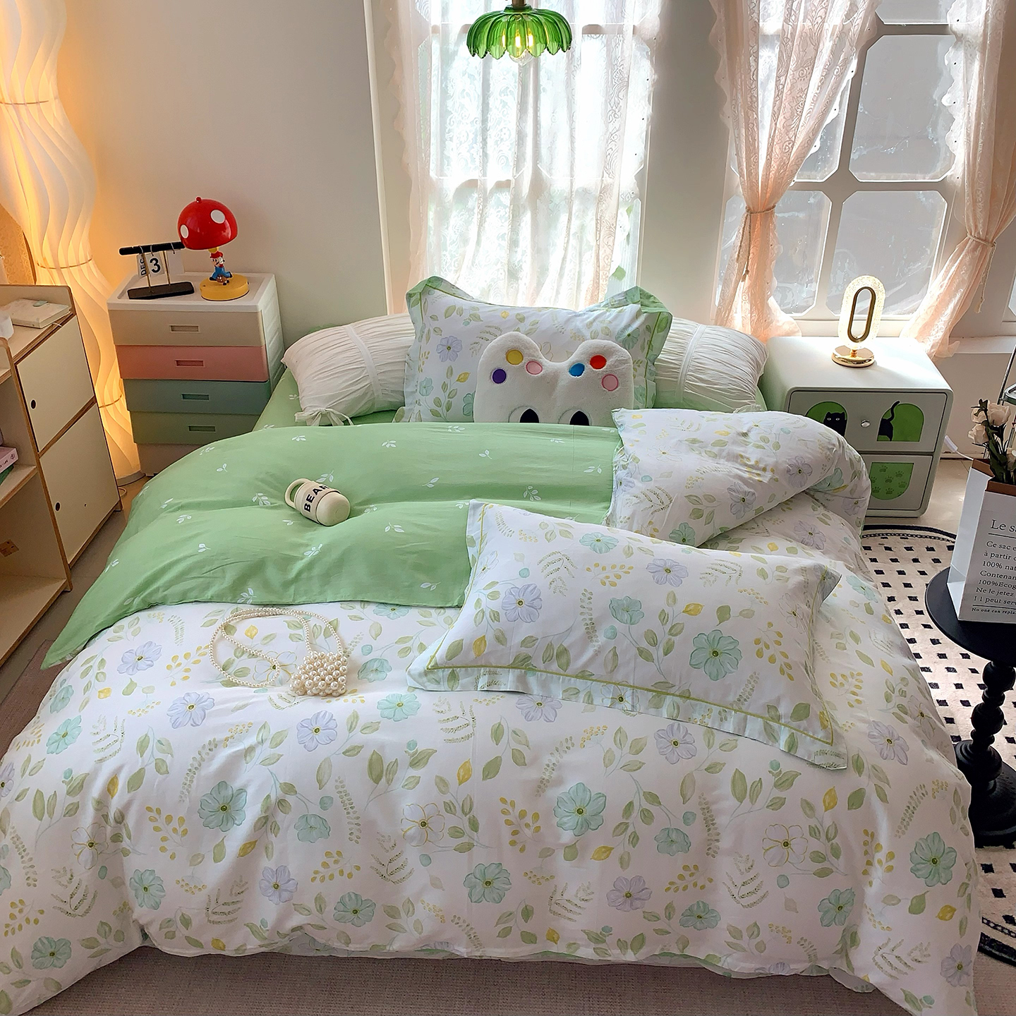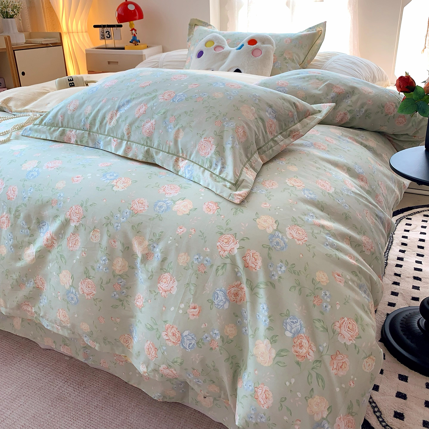 莱豫家纺 2025新款亲肤舒适小清新印花全棉四件套第七批 浅笑嫣然