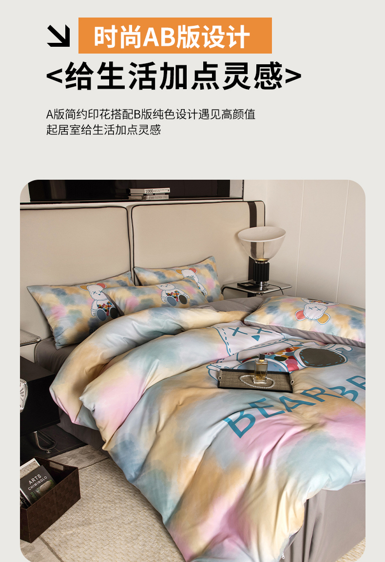 (总)色鬼布艺高端家居主号 2025秋冬新款网红款水洗棉四季款四件套,豹纹熊-粉,豹纹熊-绿,彩虹兔,格子熊,公仔蓝,梦幻粉,梦幻蓝,棋盘格公仔,太阳花粉,天使熊-粉,天使熊-咖,小熊头,熊头白,熊头橙,熊头咖,熊仔白