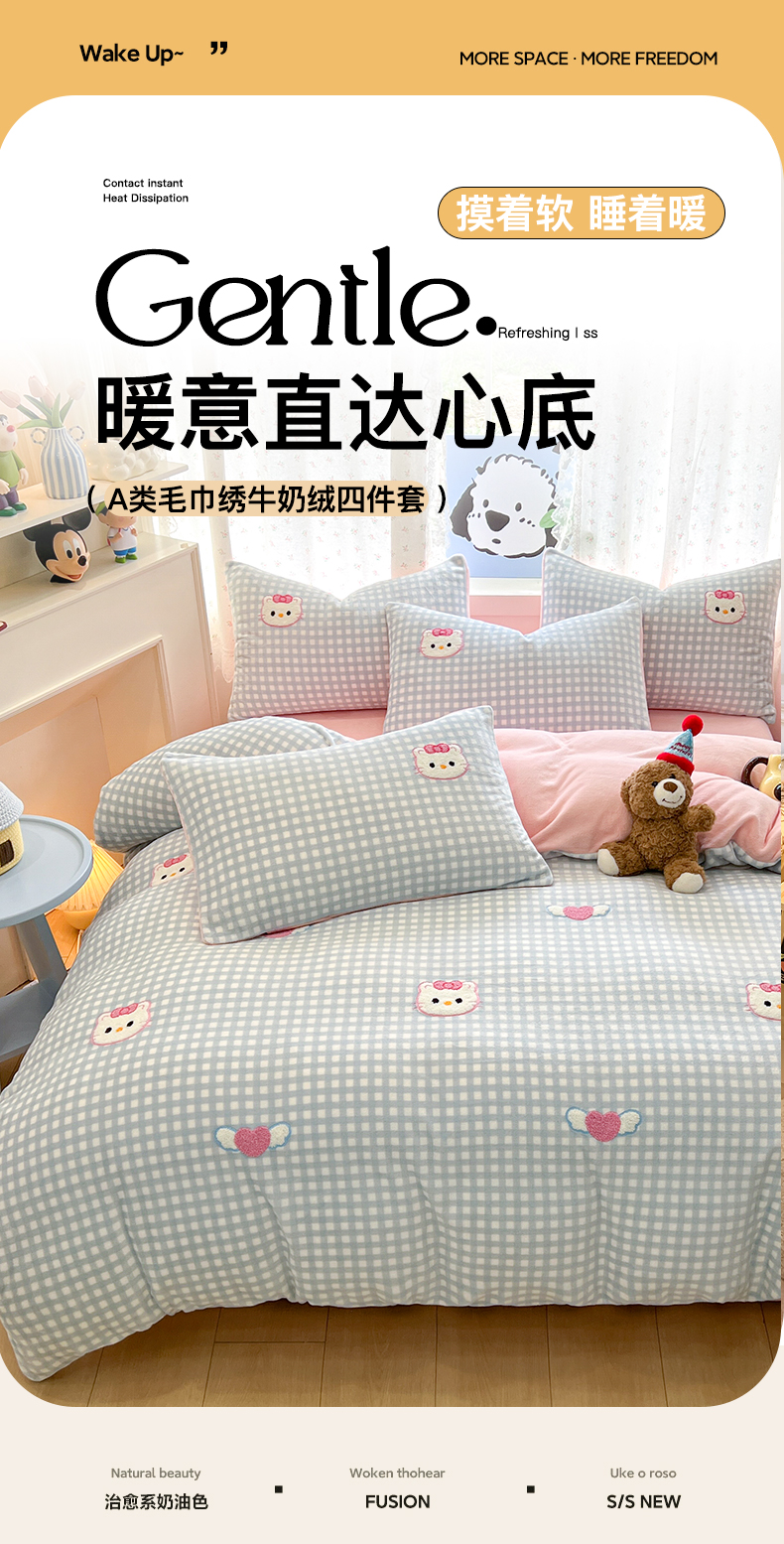 当前位置: 91家纺网 > 商品网购 > 床品套件 > 四件套 > 牛奶绒四件套 > 寐居家纺 2025新款纯色毛巾绣牛奶绒四件套 甜心格韵