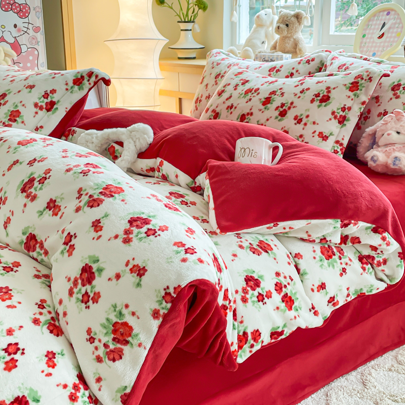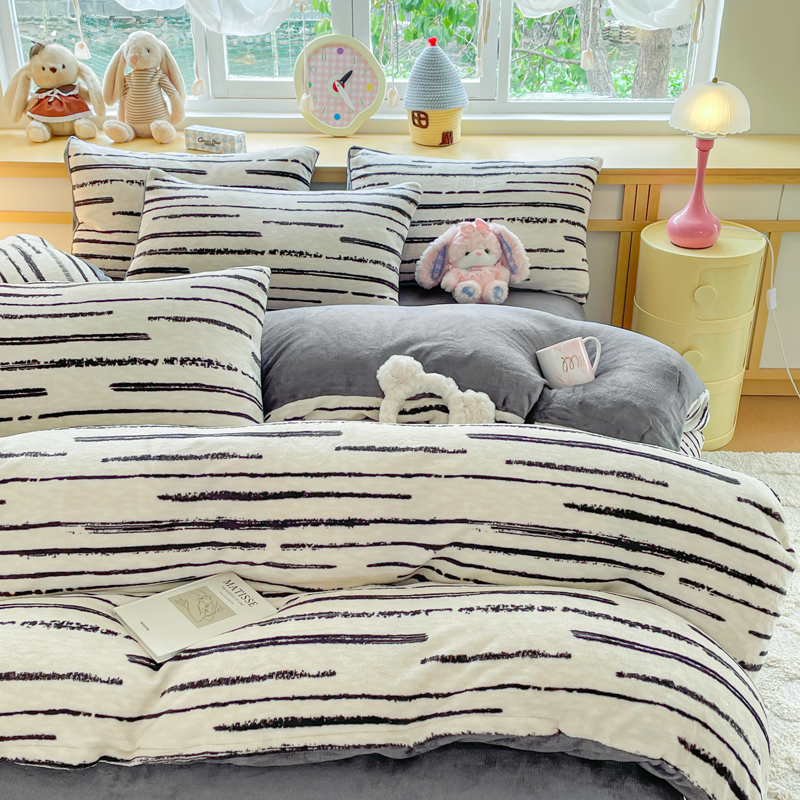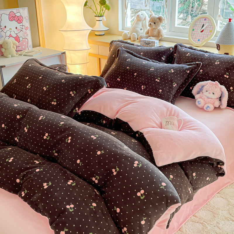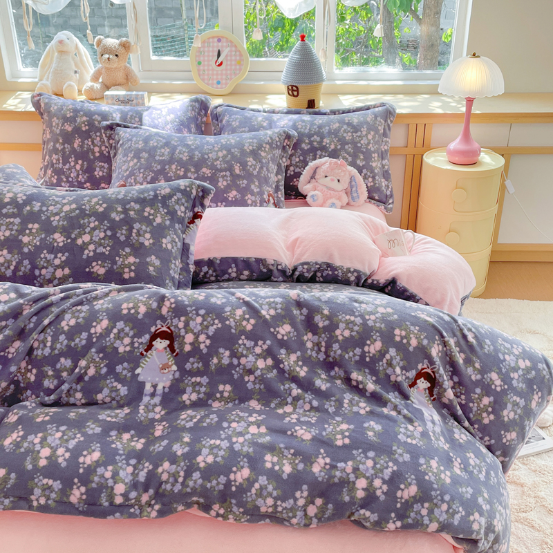 弗苓家纺 2025新款加厚保暖双面牛奶绒四件套 花妖- 黑