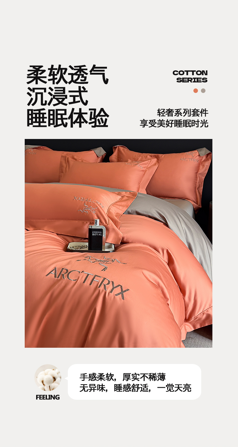 (总)置顶家纺 2025新款轻奢50双股长绒棉全棉刺绣骨头鸟四件套