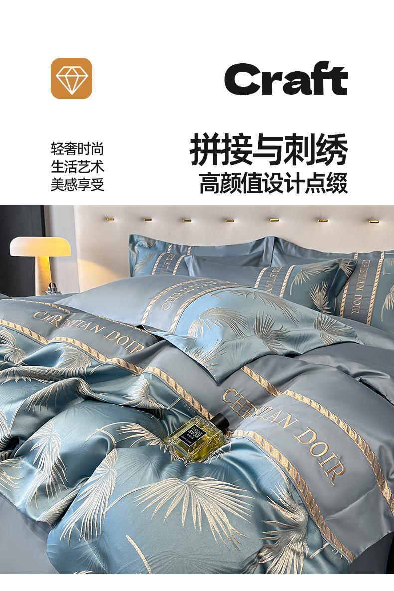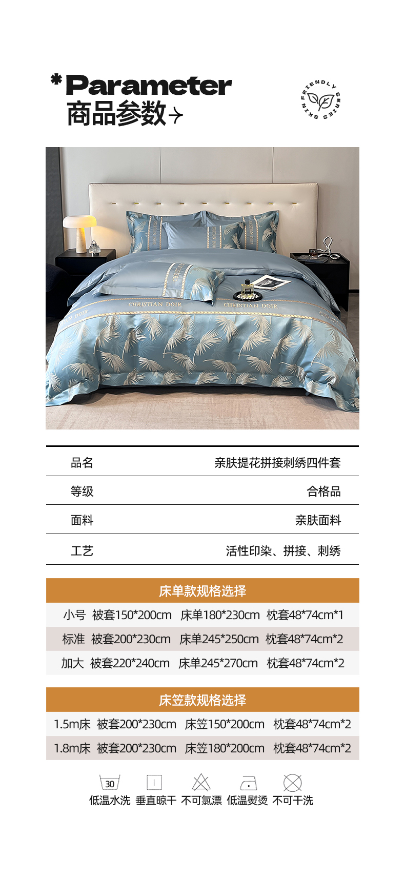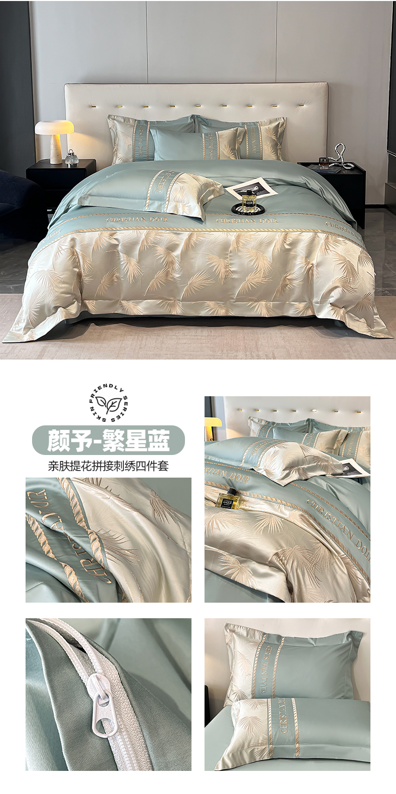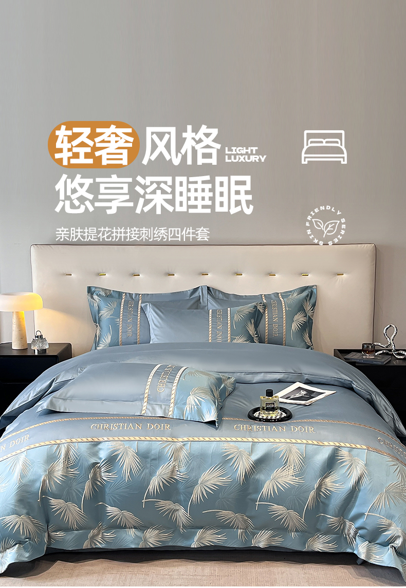 当前位置: 91家纺网 > 商品网购 > 床品套件 > 四件套 > 提花四件套 > 置顶家纺 2025新款亲肤提花拼接刺绣四件套系列 颜予-宾利蓝