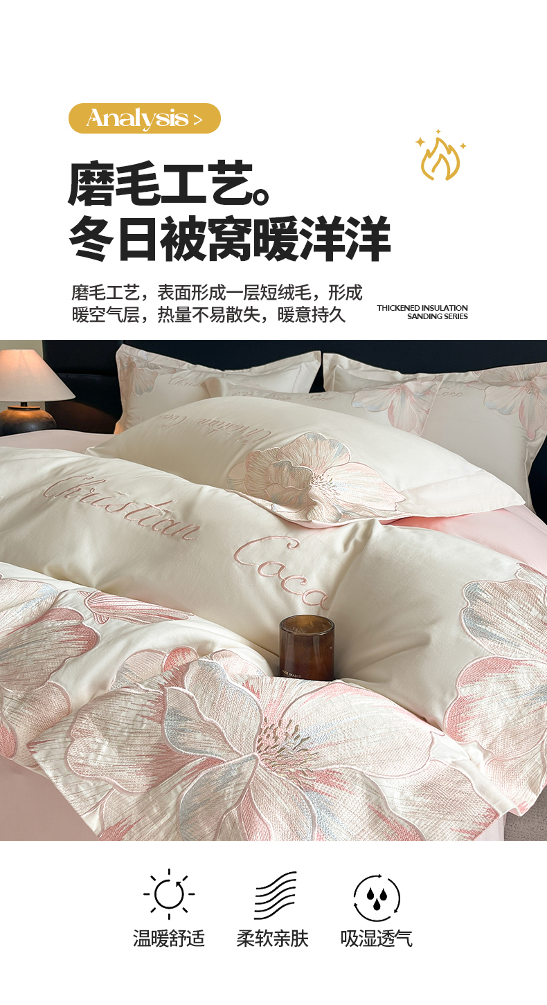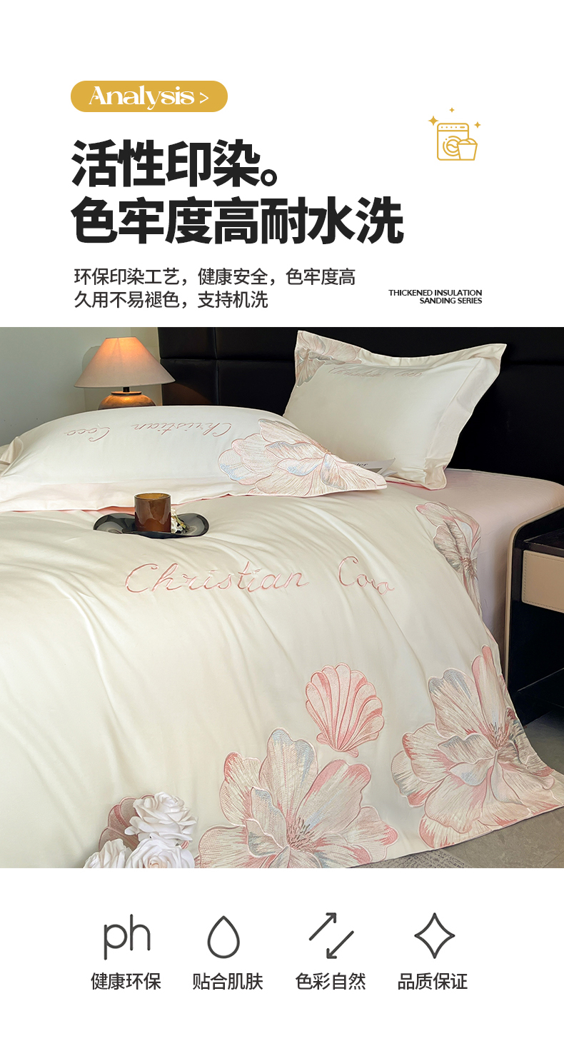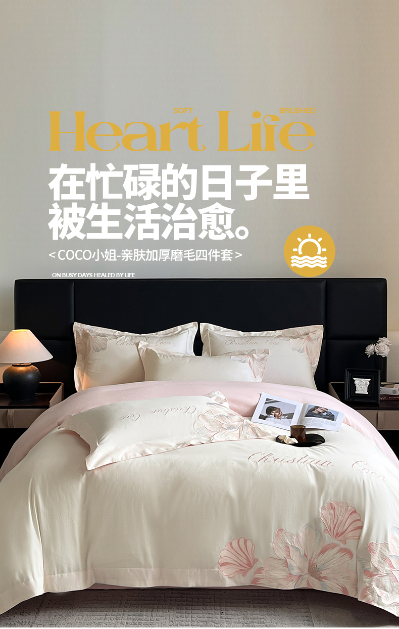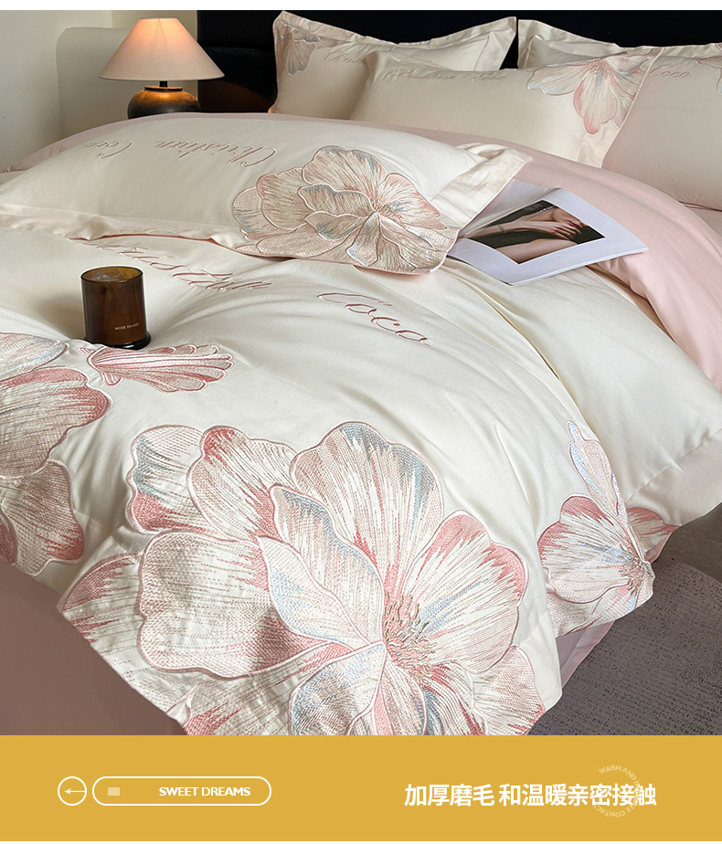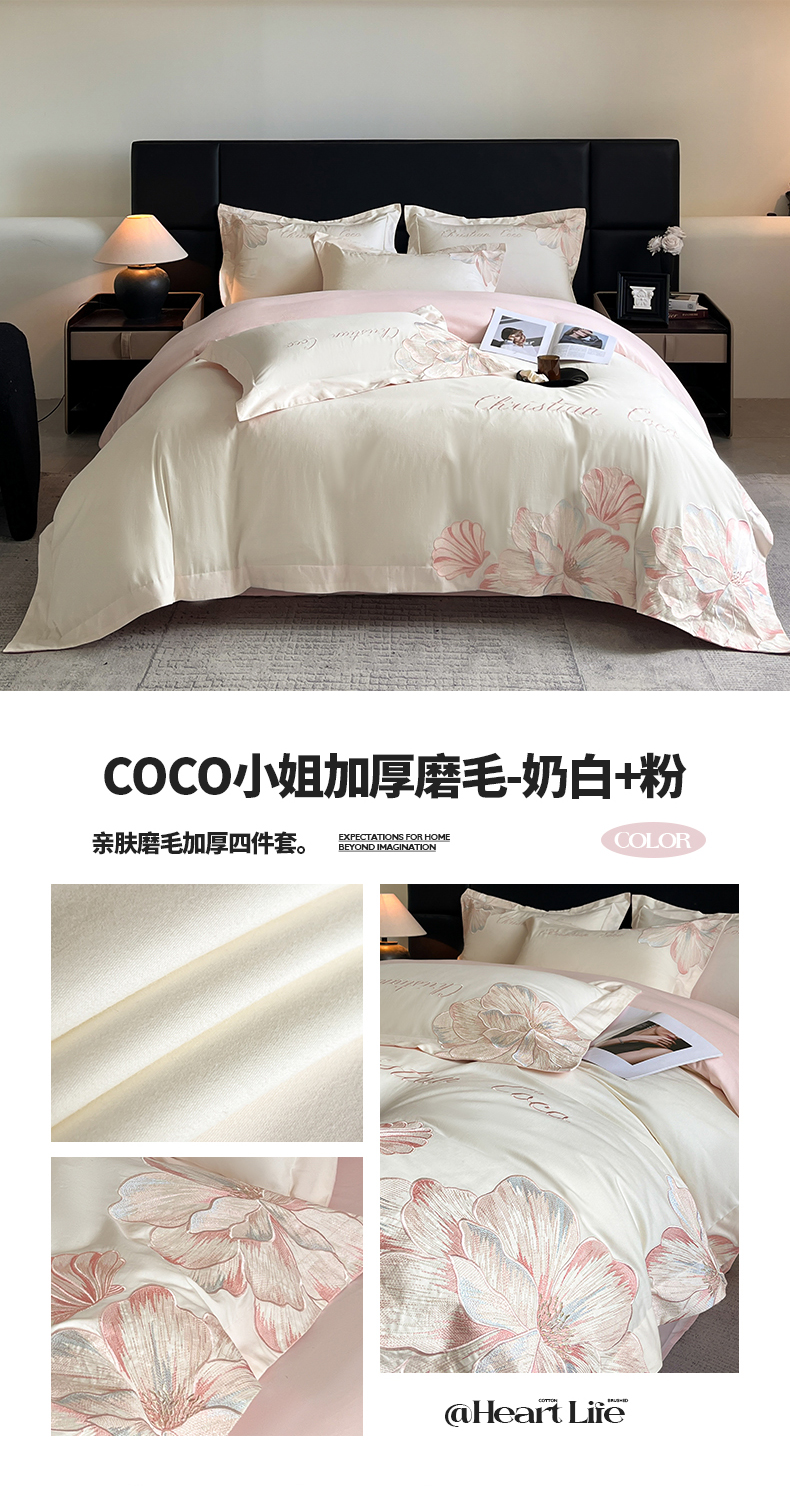 当前位置: 91家纺网 > 商品网购 > 床品套件 > 四件套 > 磨毛活性四件套 > 置顶家纺 2025新款COCO小姐加厚磨毛亲肤四件套 COCO小姐加厚磨毛-奶白+粉