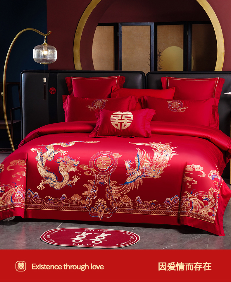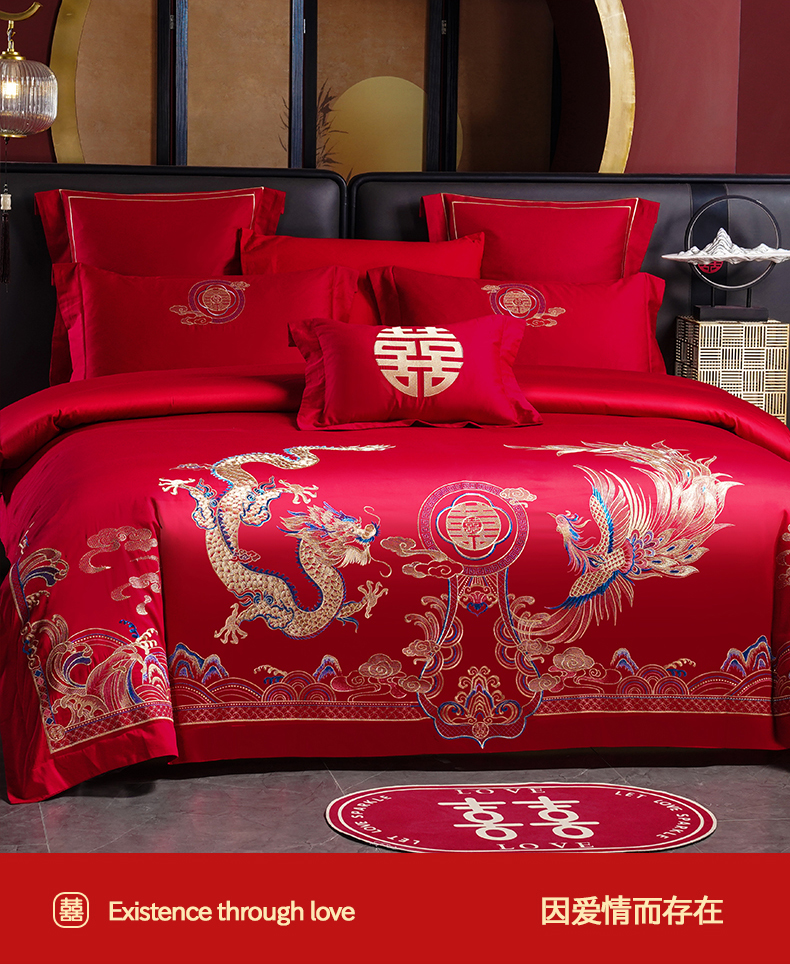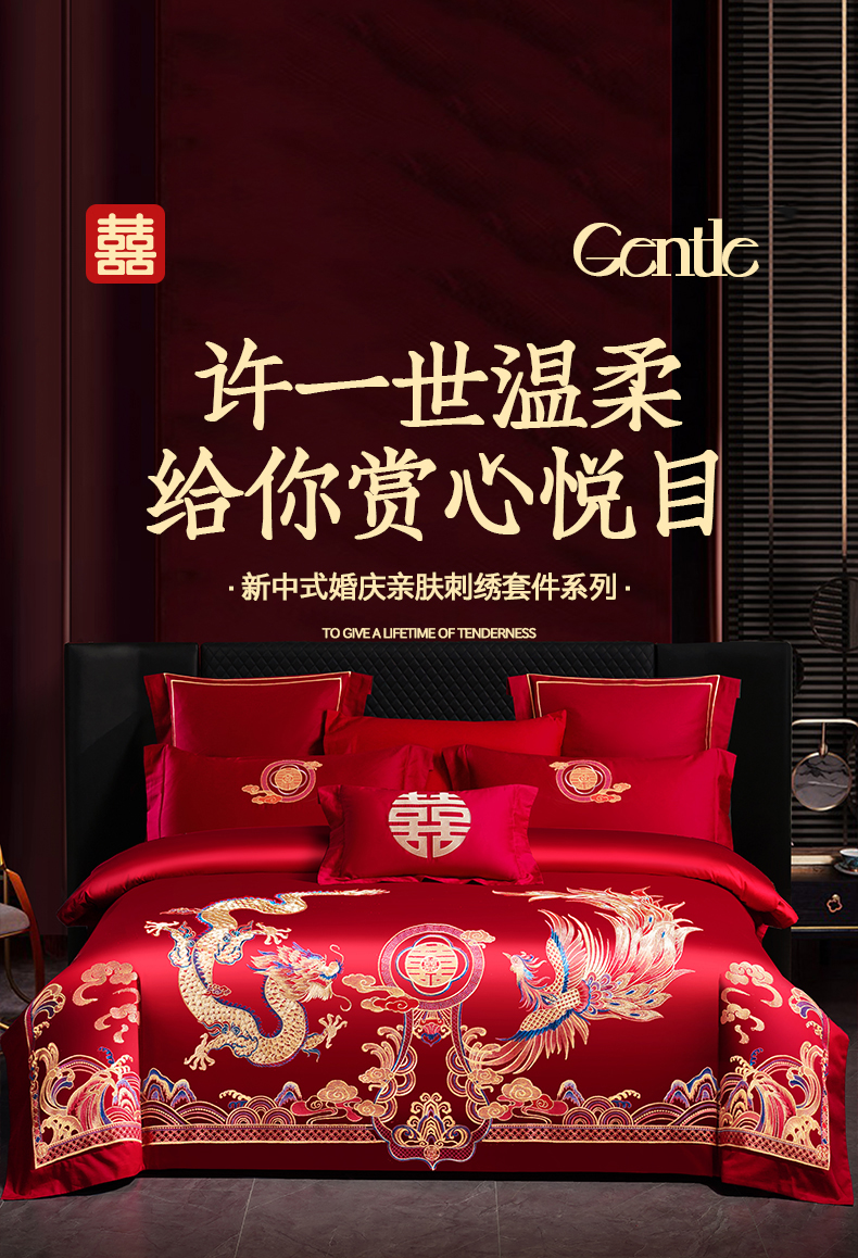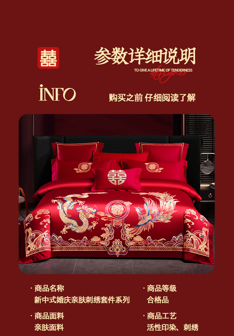 当前位置: 91家纺网 > 商品网购 > 床品套件 > 四件套 > 婚庆四件套 > 置顶家纺 2025新款新中式婚庆亲肤刺绣四件套 龙凤大喜-大红