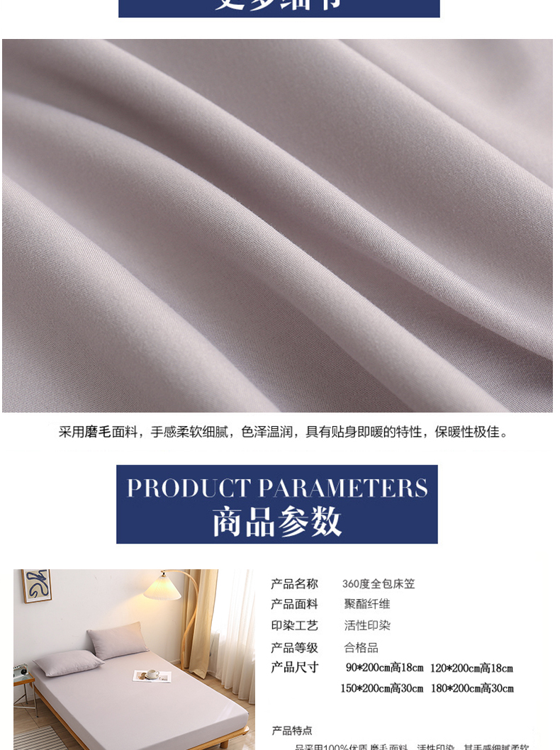 商品名称:啊雅家居 2025新款简约单人床笠双人床笠水洗磨毛床笠 浅灰