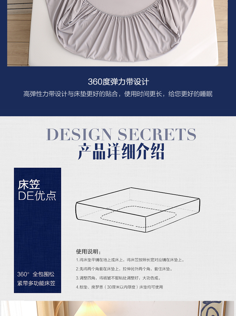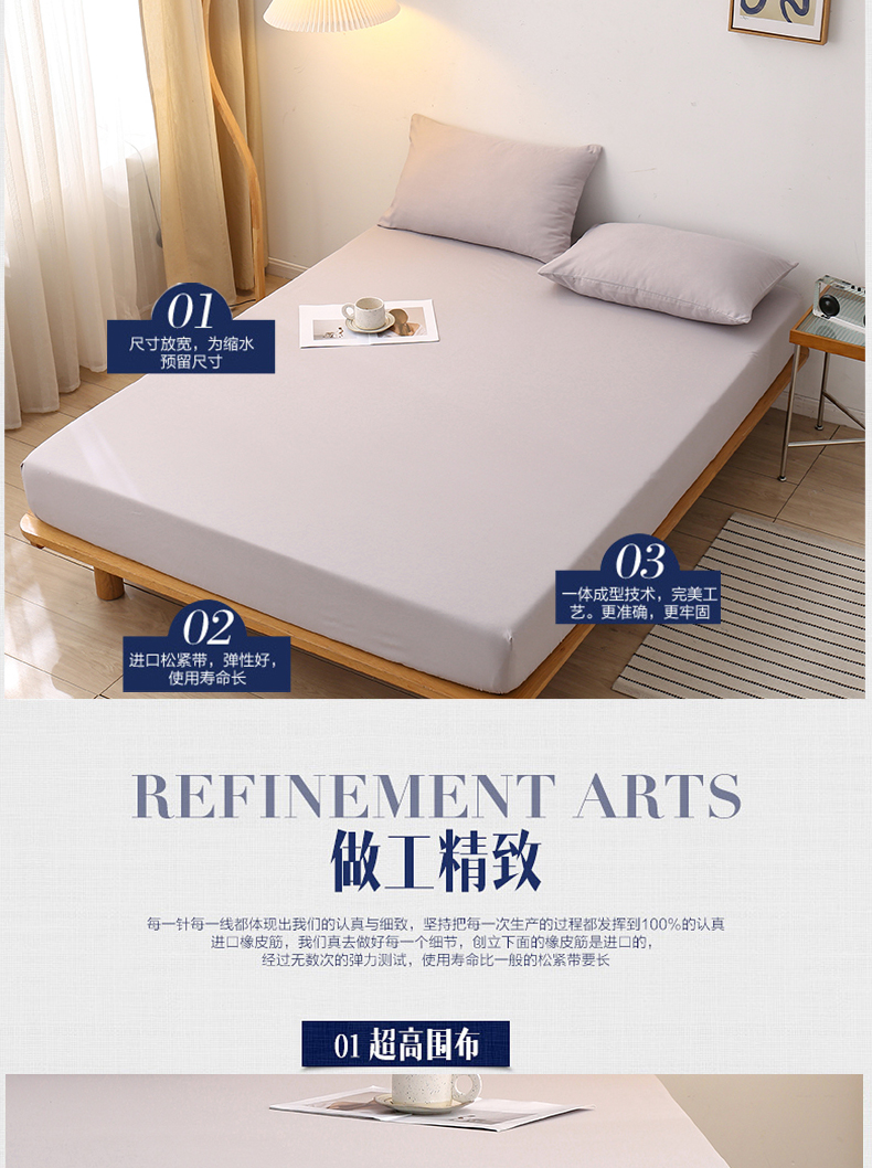 啊雅家居 2025新款简约单人床笠双人床笠水洗磨毛床笠 浅灰
