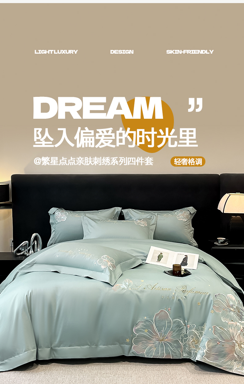 (总)置顶家纺 2025新款亲肤花卉刺绣四件套-繁星点点
