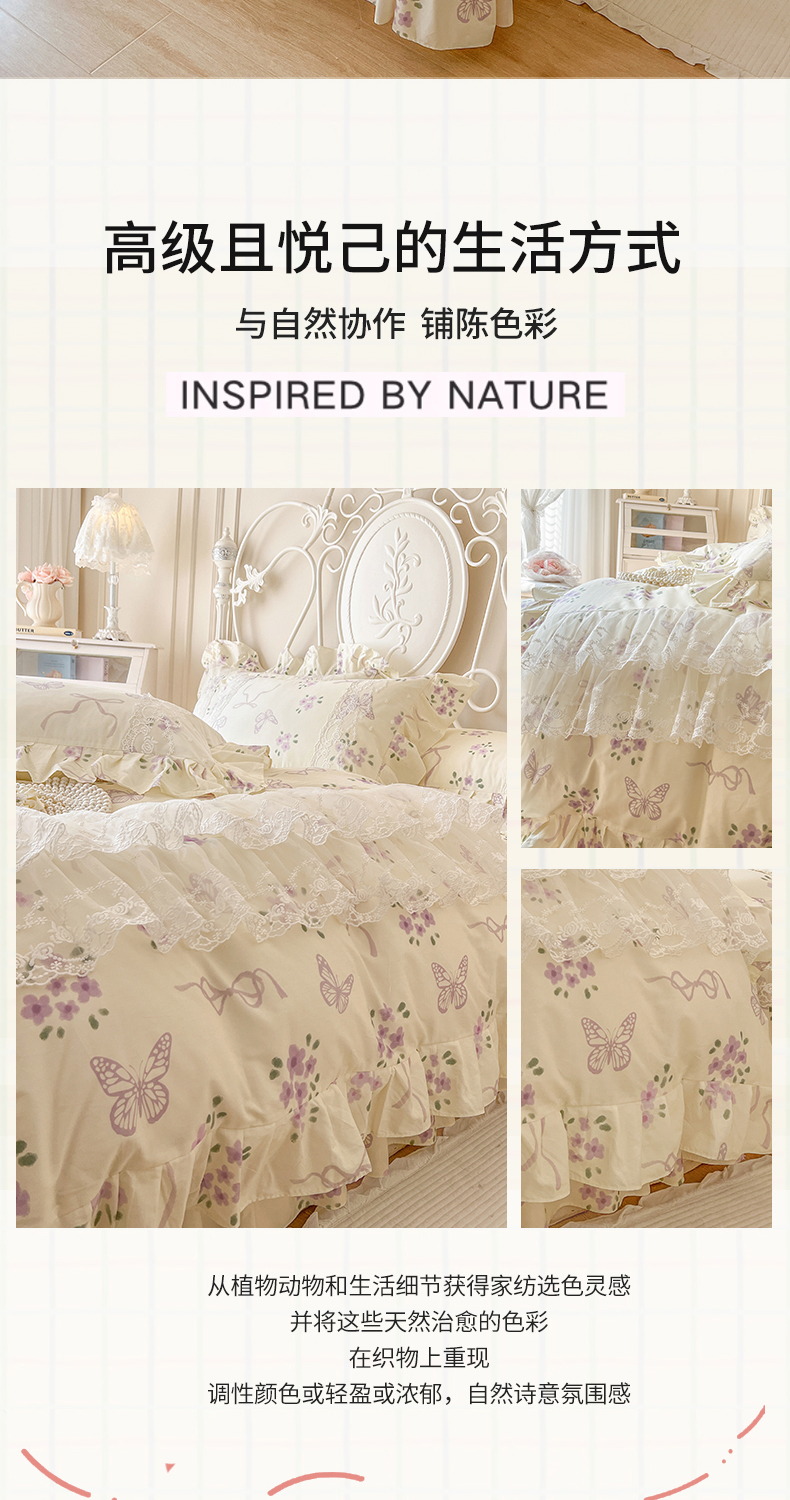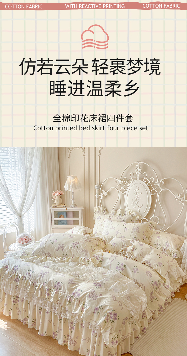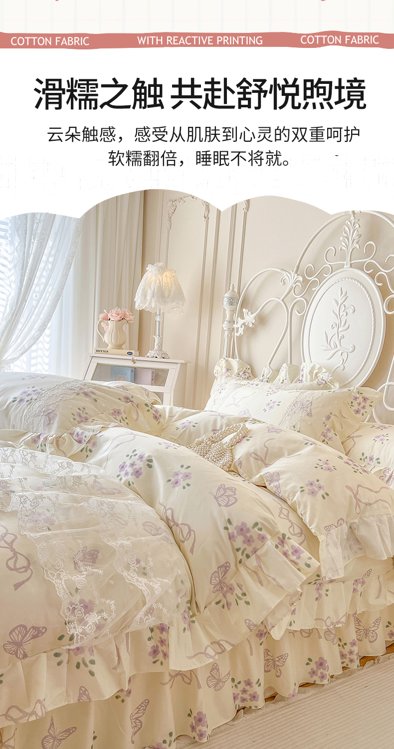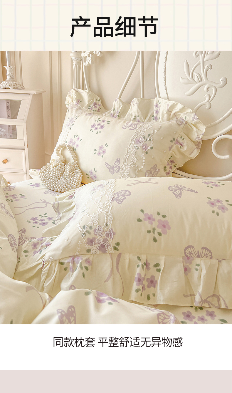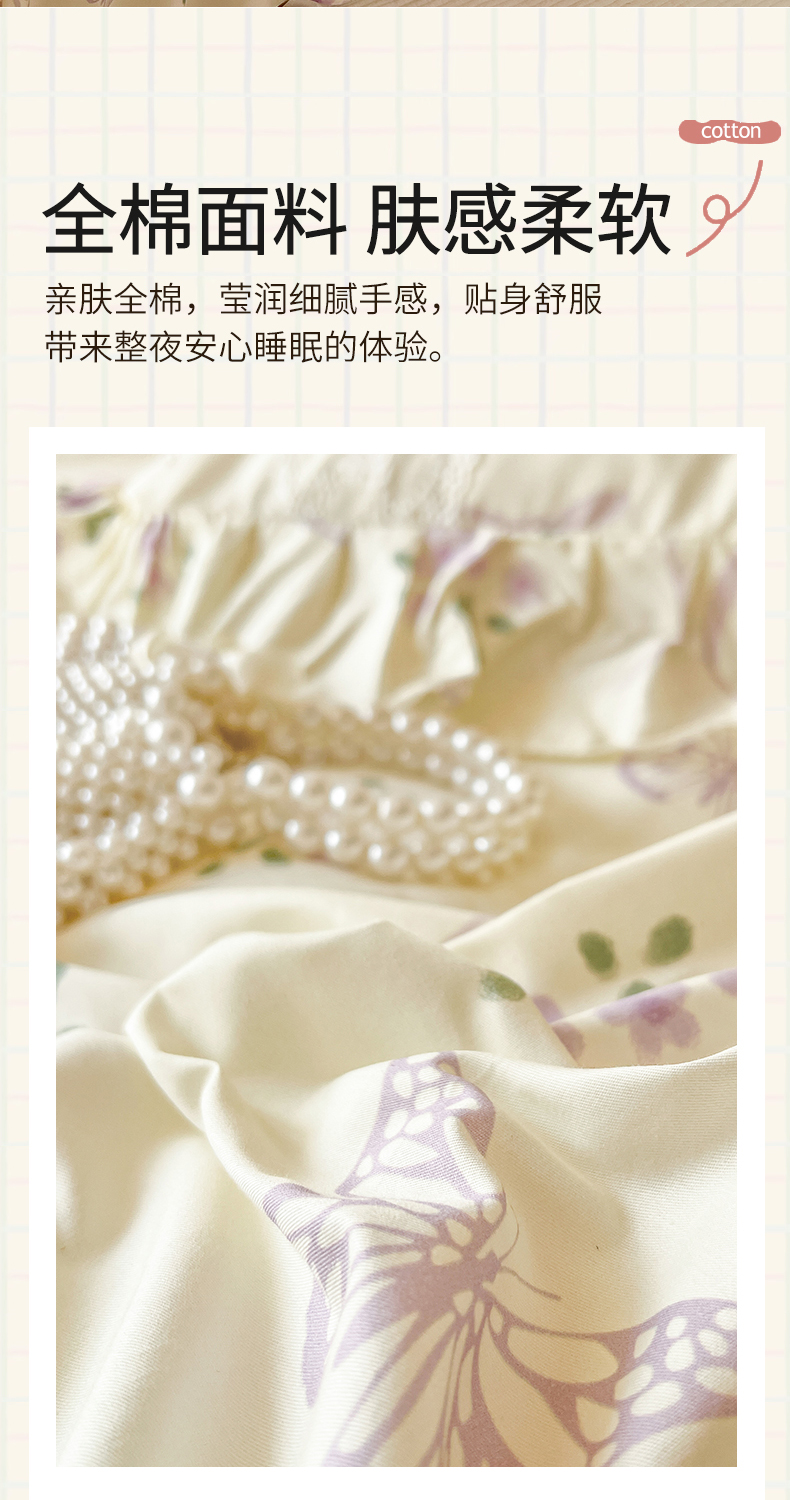 当前位置: 91家纺网 > 商品网购 > 床品套件 > 四件套 > 全棉普通四件套 > 网红馆(ck家纺) 2025新款全棉纯棉印花13372床裙四件套 蝶舞