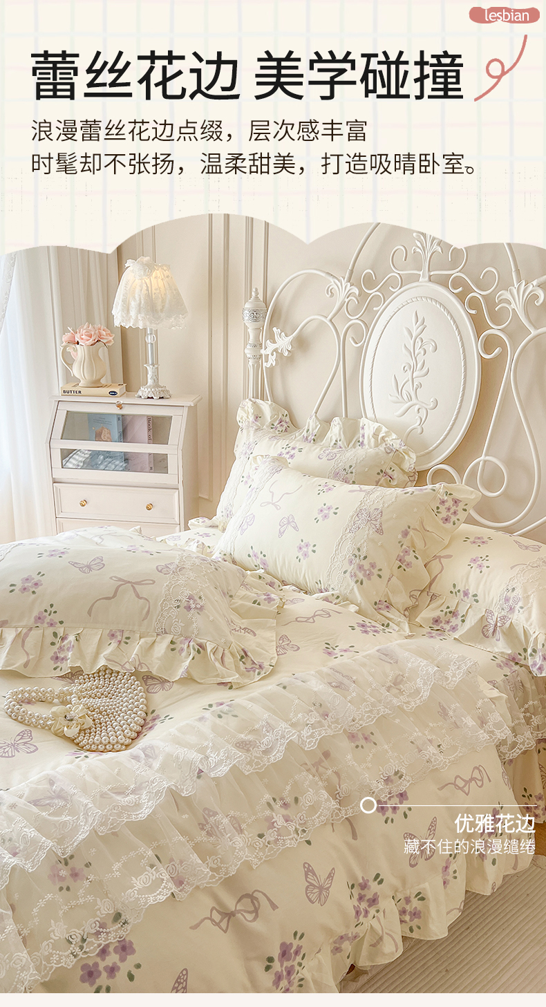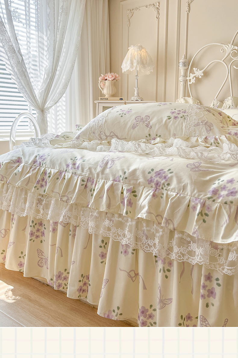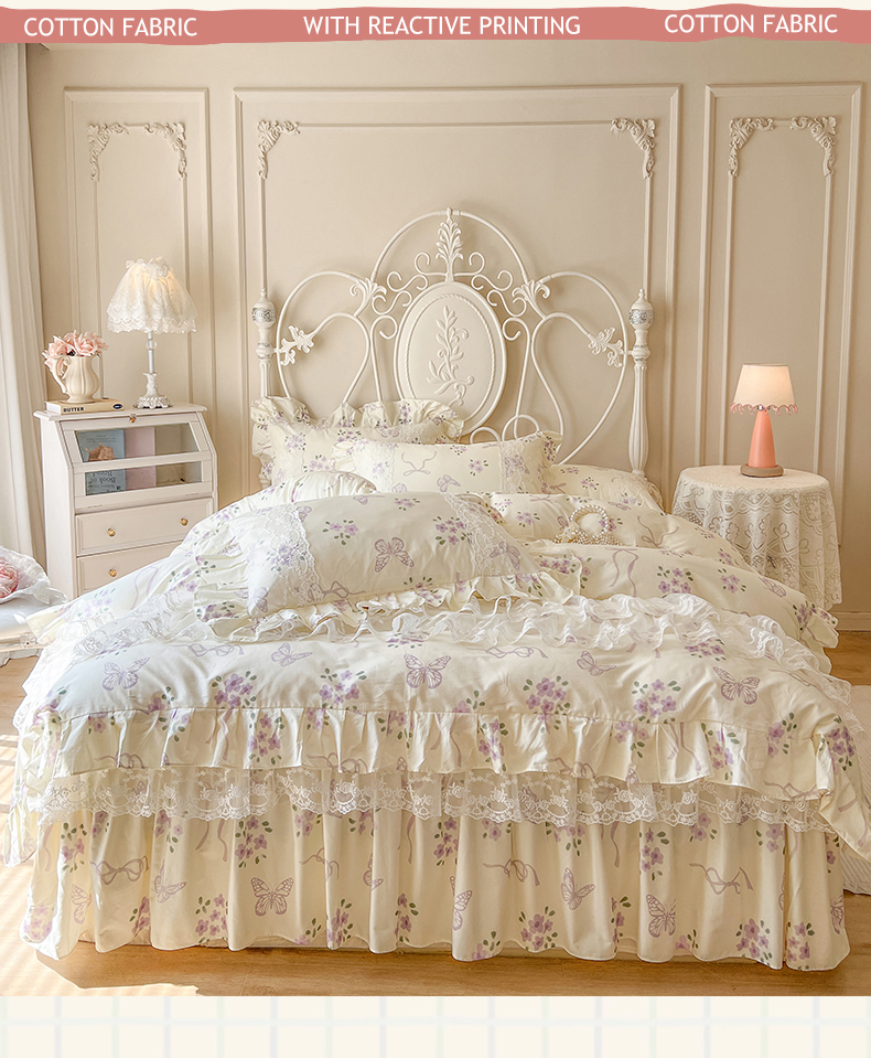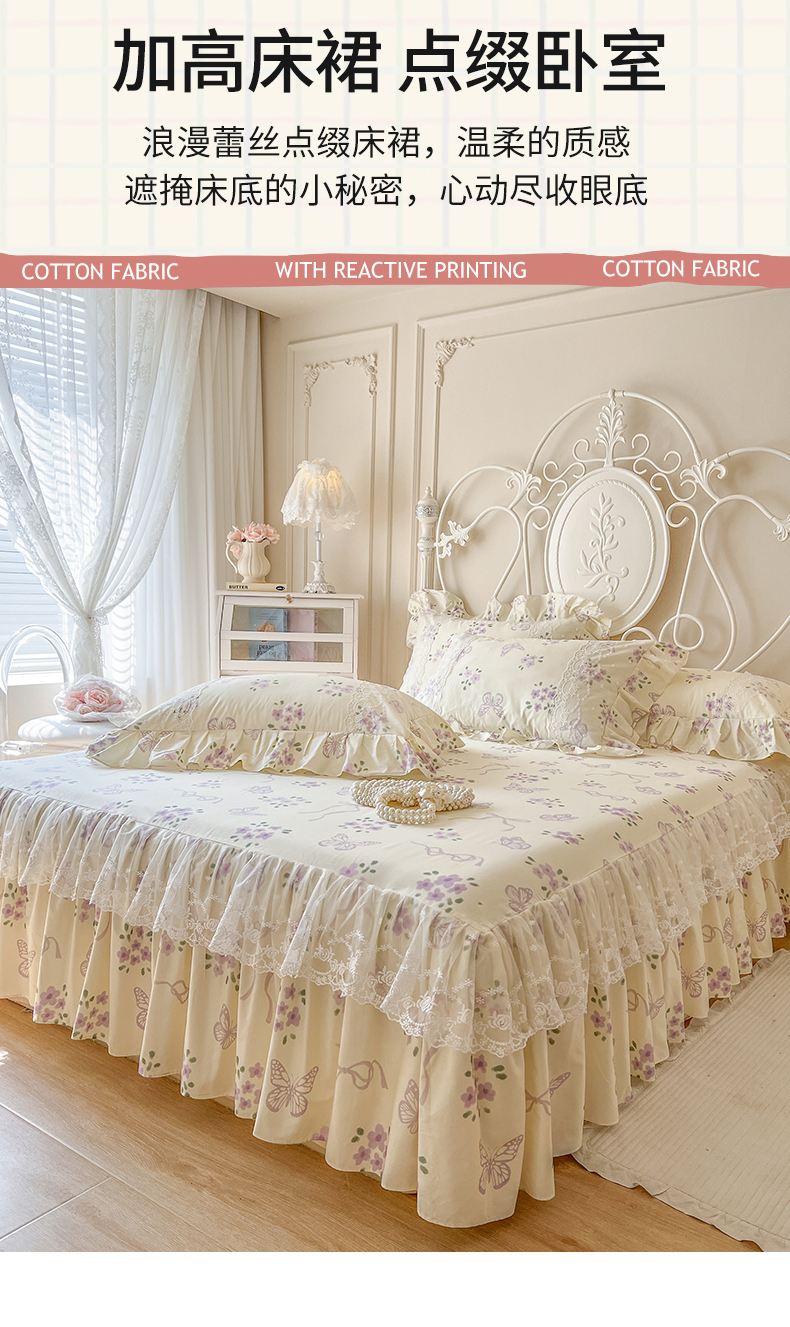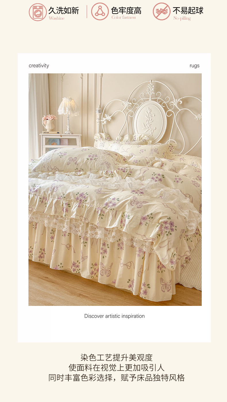 当前位置: 91家纺网 > 商品网购 > 床品套件 > 四件套 > 全棉普通四件套 > 网红馆(ck家纺) 2025新款全棉纯棉印花13372床裙四件套 蝶舞