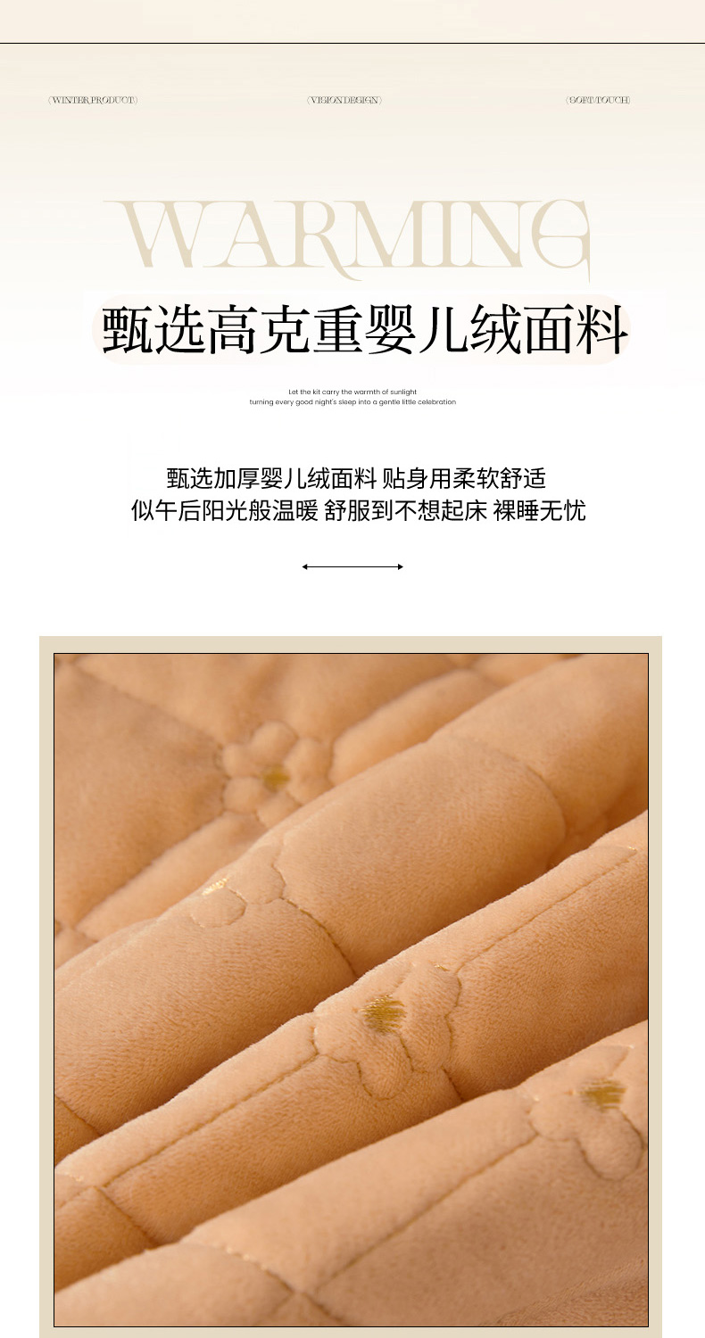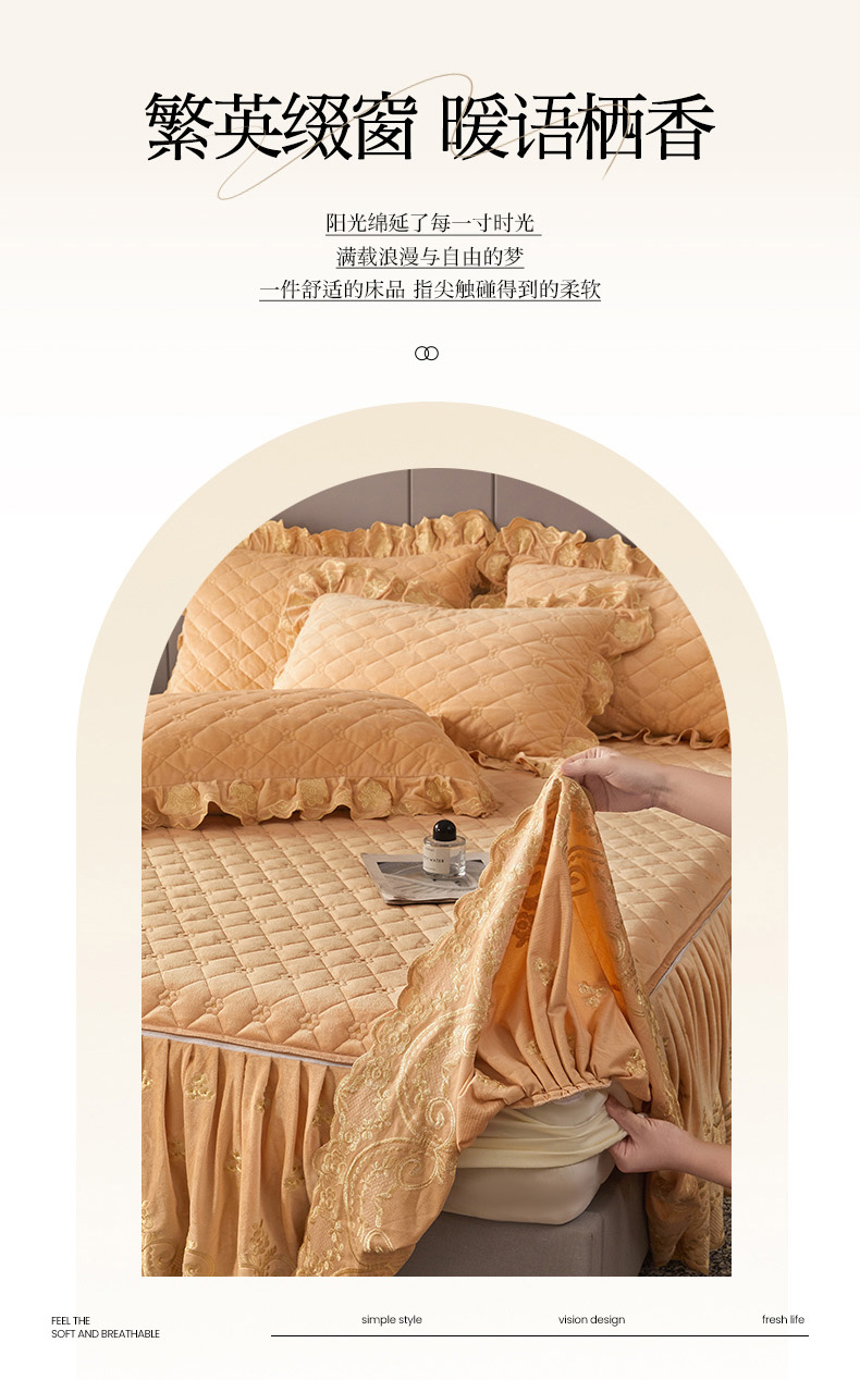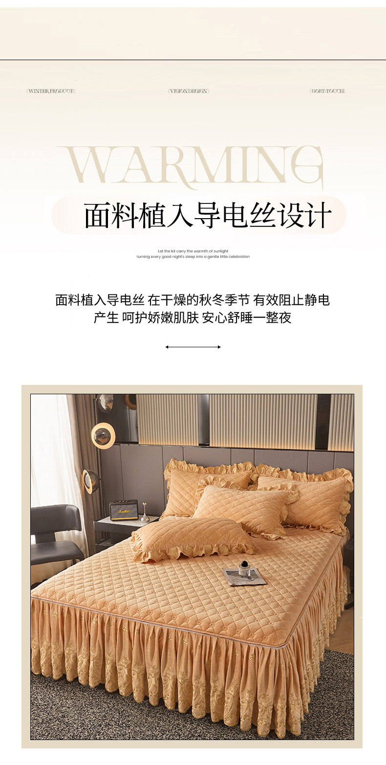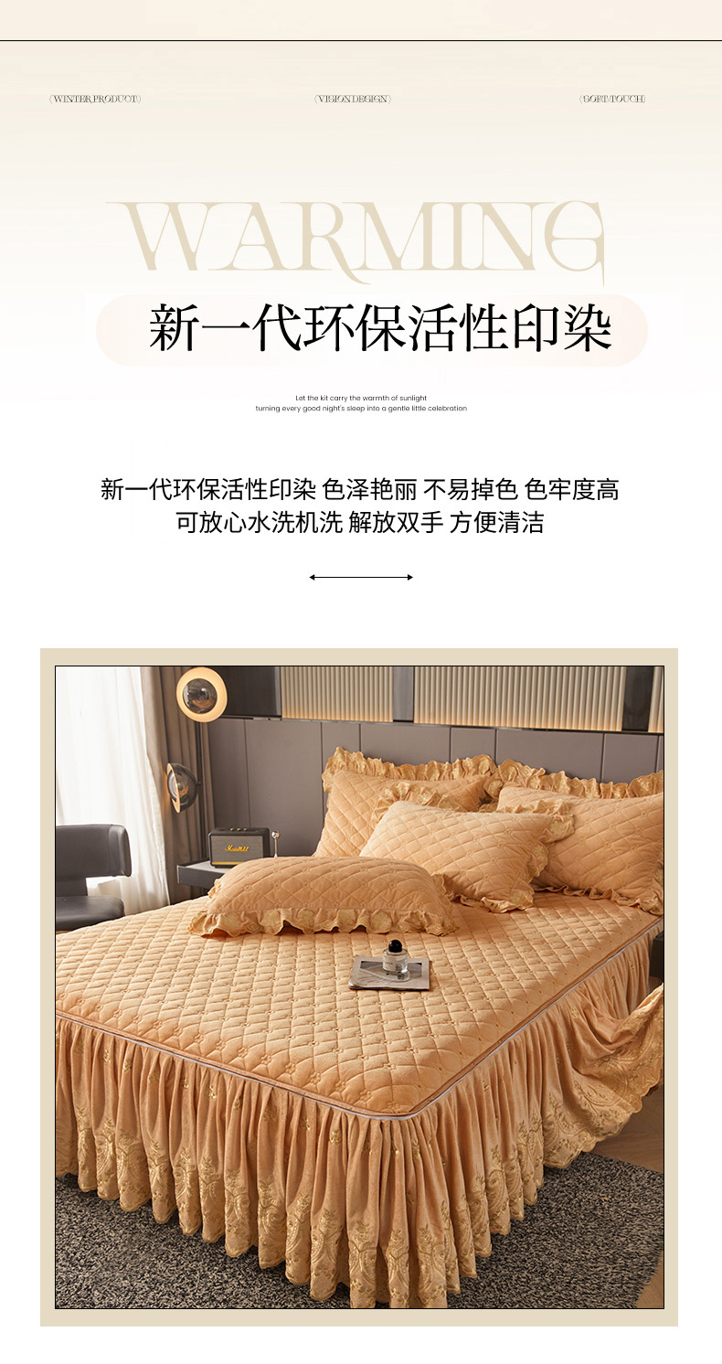 当前位置: 91家纺网 > 商品网购 > 床品套件 > 四件套 > 其它四件套 > 罗艺轩 2025新款婴儿绒加厚保暖床裙式四件套-心语 心语-香槟金