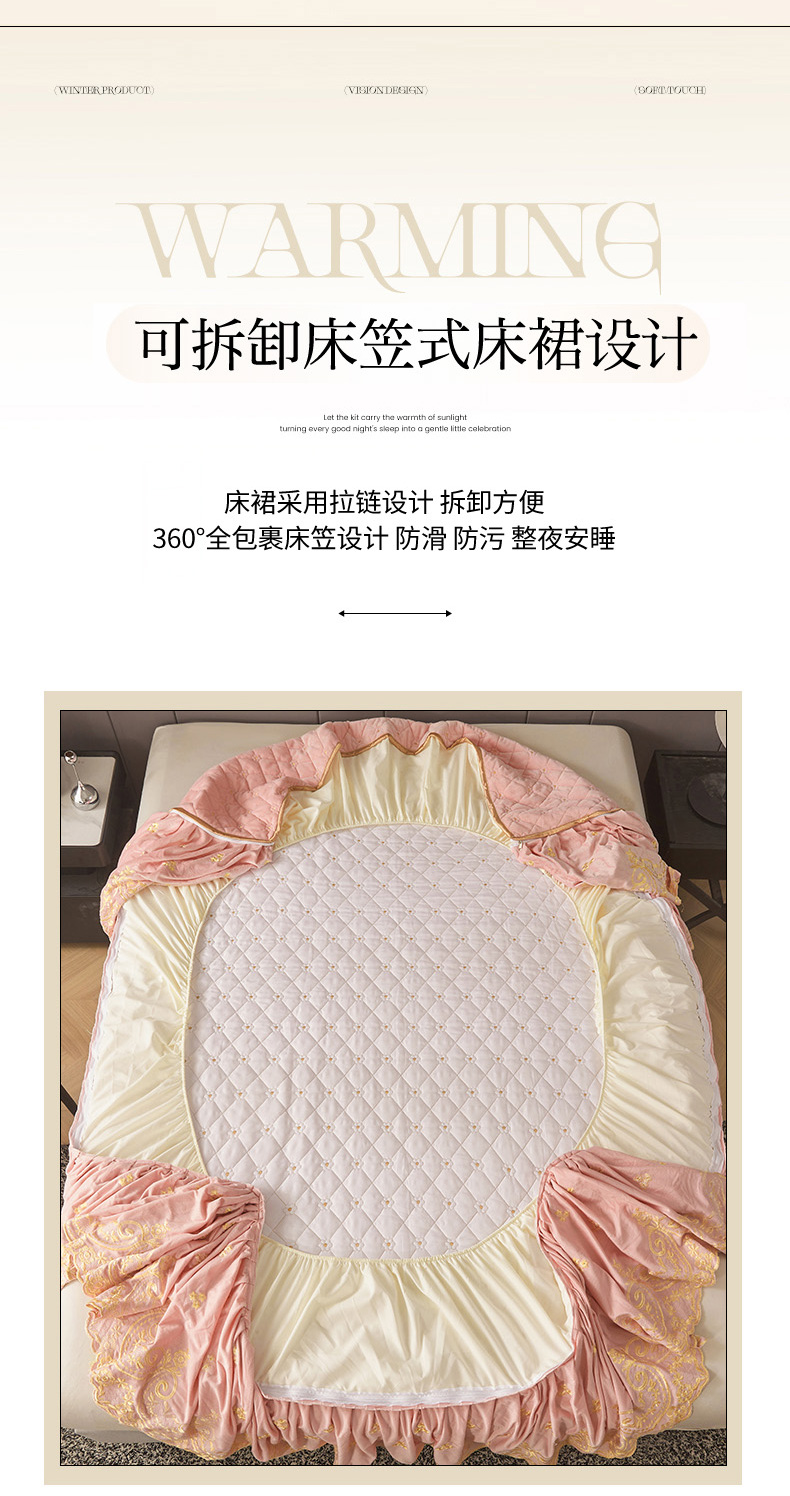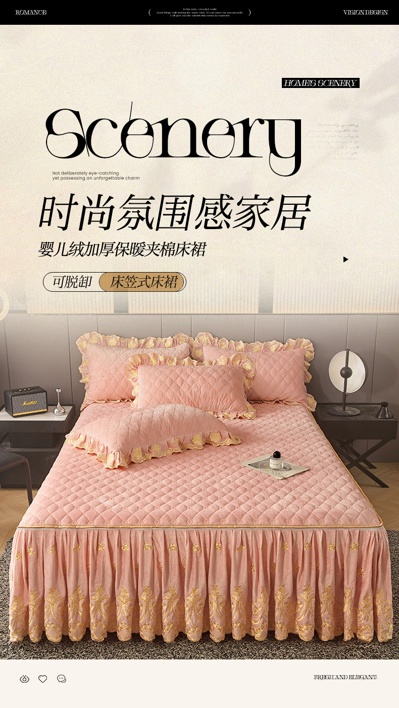 • 91家纺网 家纺一手货源 找家纺 罗艺轩 2025新款婴儿绒加厚保暖床裙式三件套-心语 心语-梦幻玉