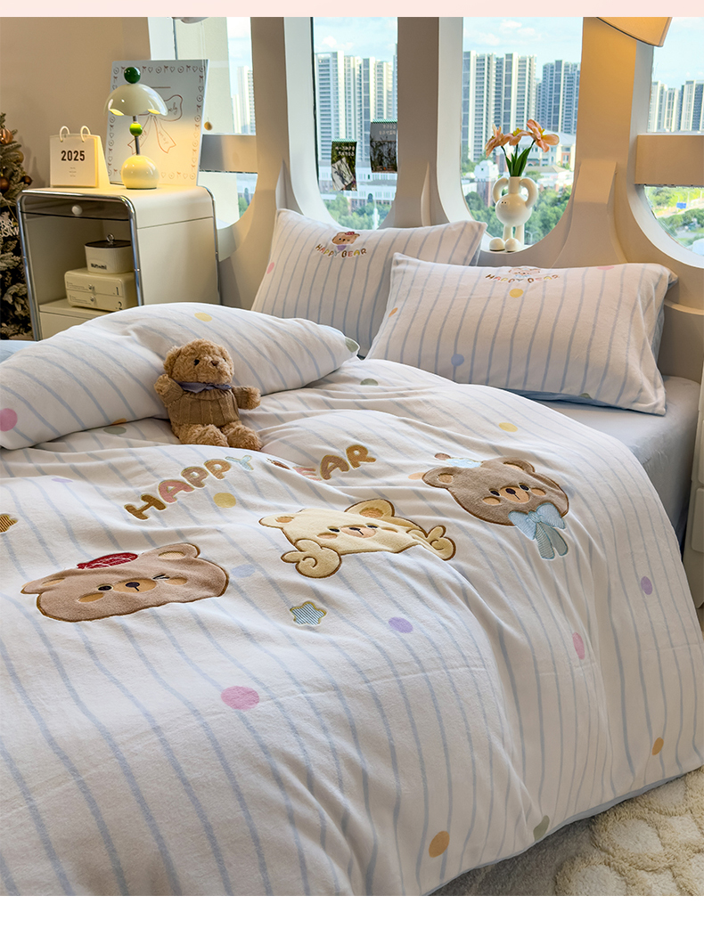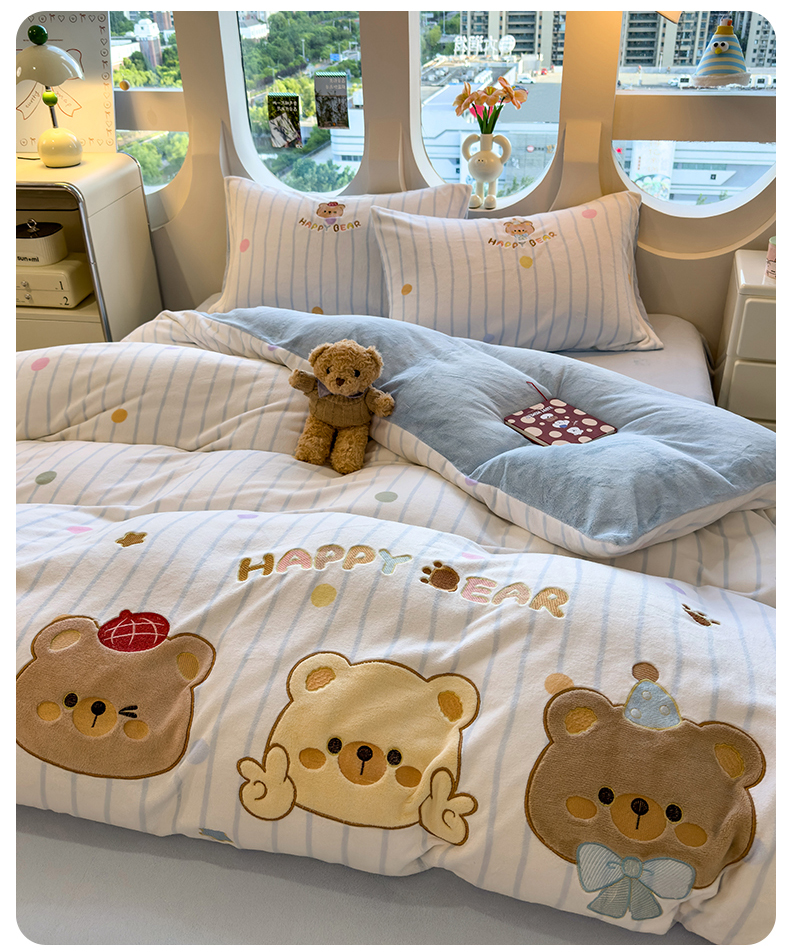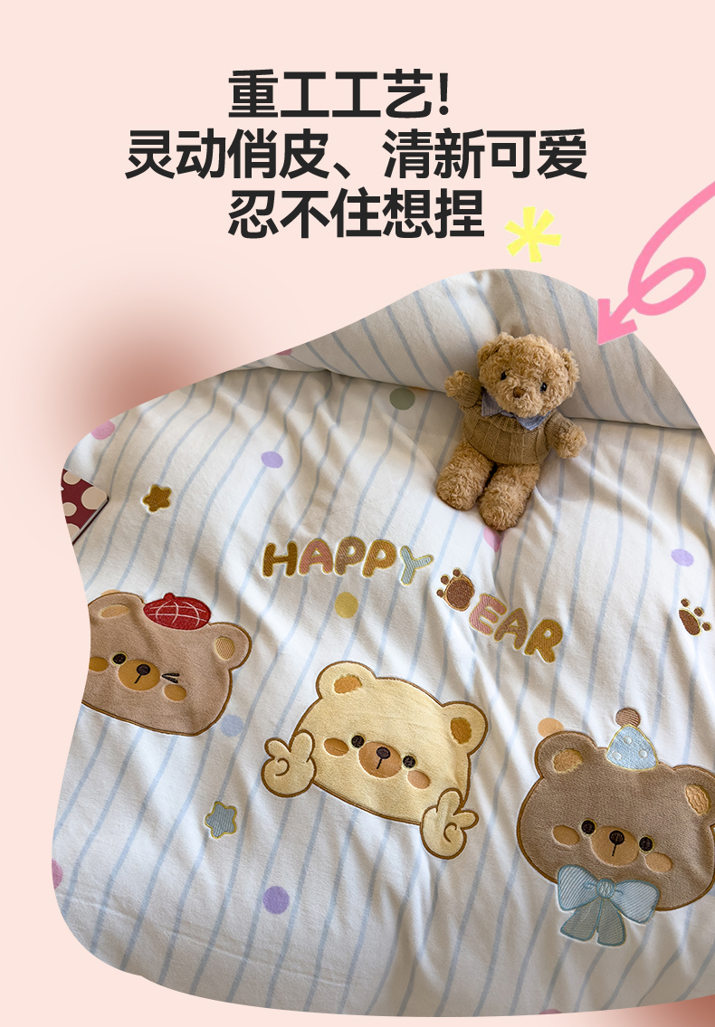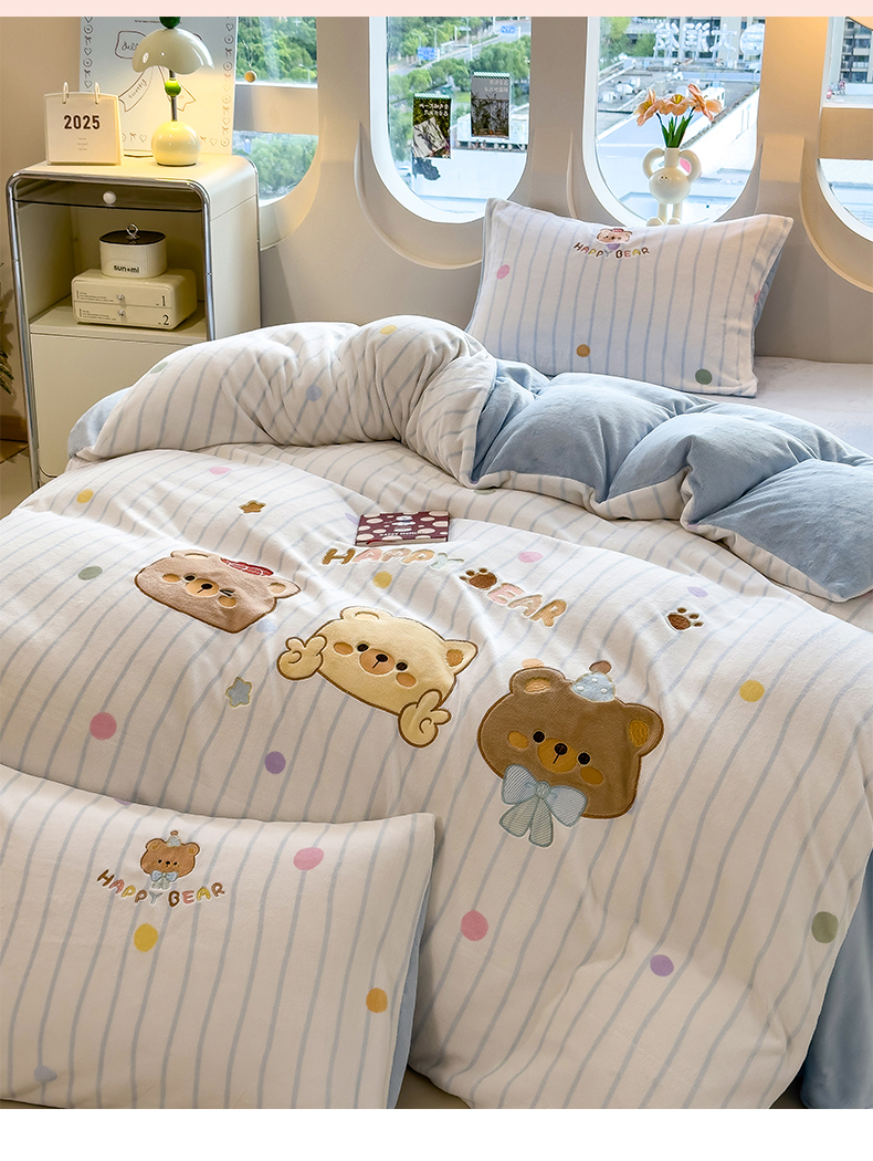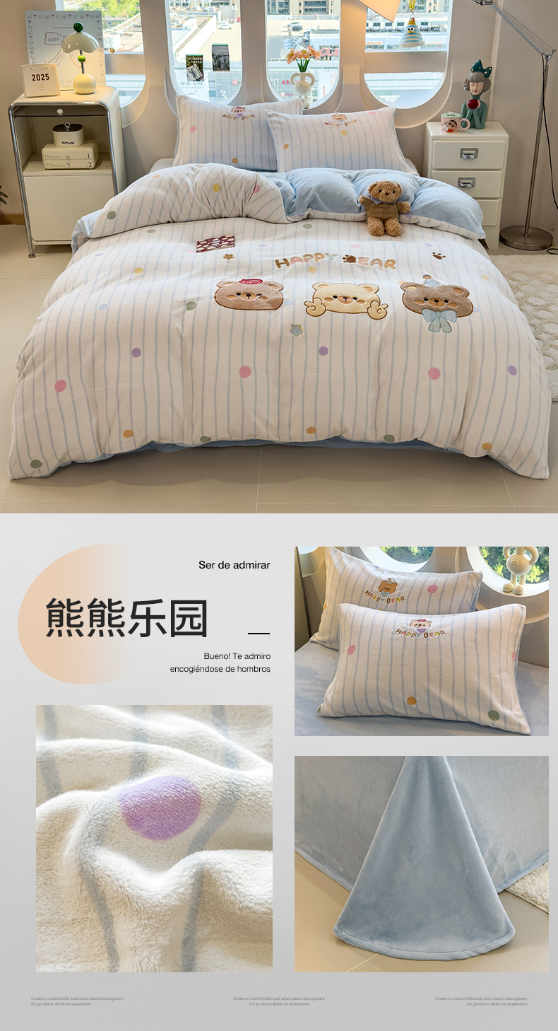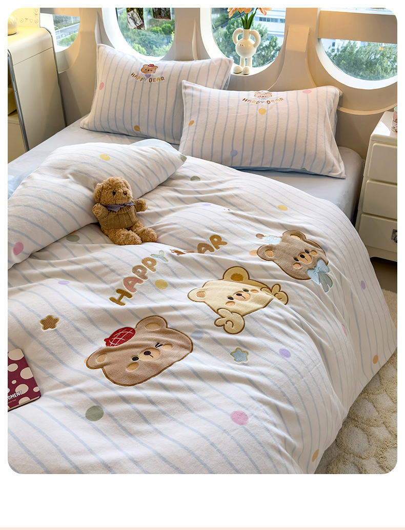 当前位置: 91家纺网 > 商品网购 > 床品套件 > 四件套 > 牛奶绒四件套 > 兄弟坊 2025新款卡通消光牛奶绒贴布绣四件套 熊熊乐园