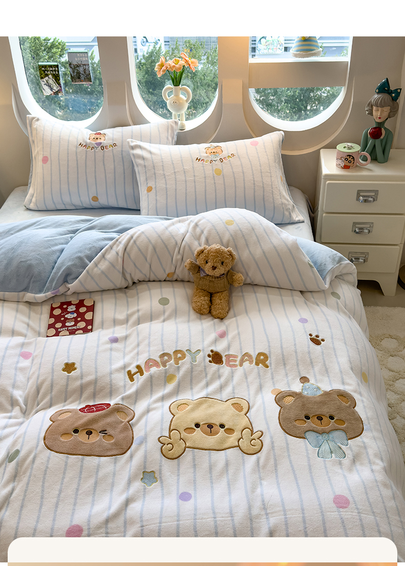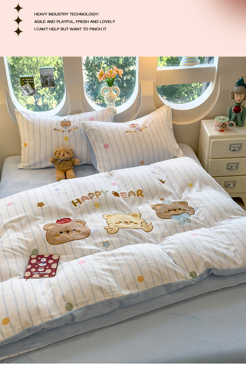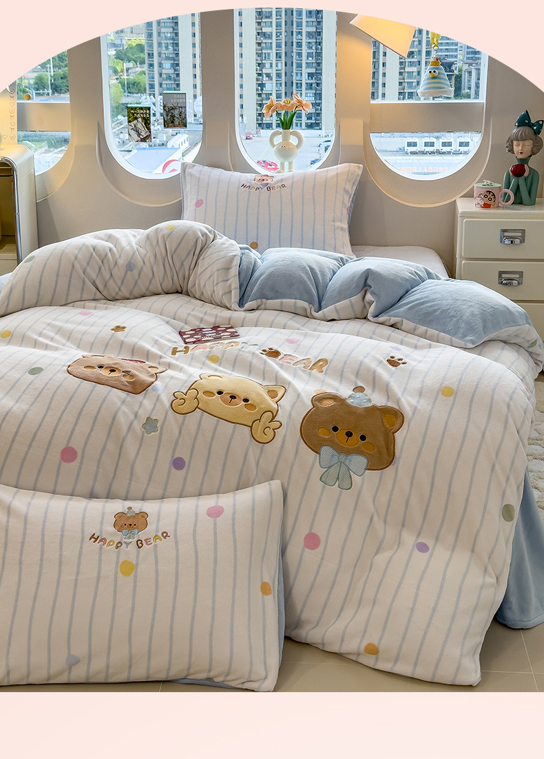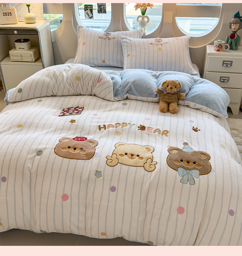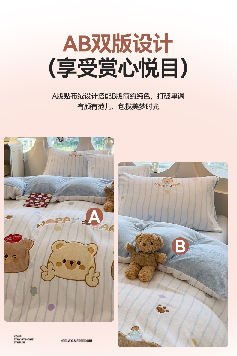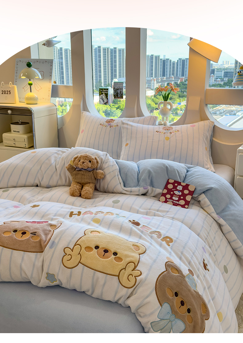 当前位置: 91家纺网 > 商品网购 > 床品套件 > 四件套 > 牛奶绒四件套 > 兄弟坊 2025新款卡通消光牛奶绒贴布绣四件套 熊熊乐园