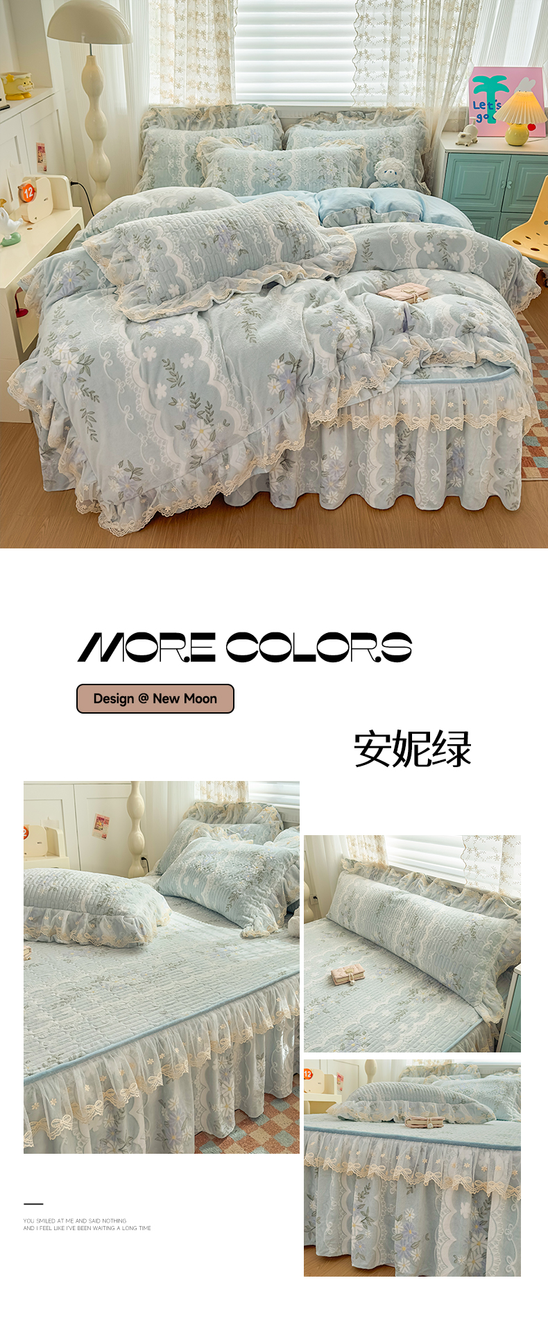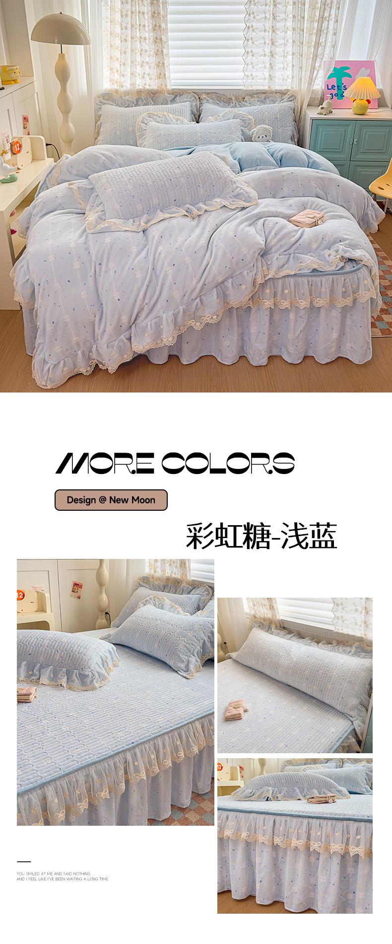 (总)家之硕家纺 2025新款立体雕花可拆洗牛奶绒床裙四件套,爱莎粉,安妮绿,彩虹糖-浅蓝,花韵,秘密花园,田园生活