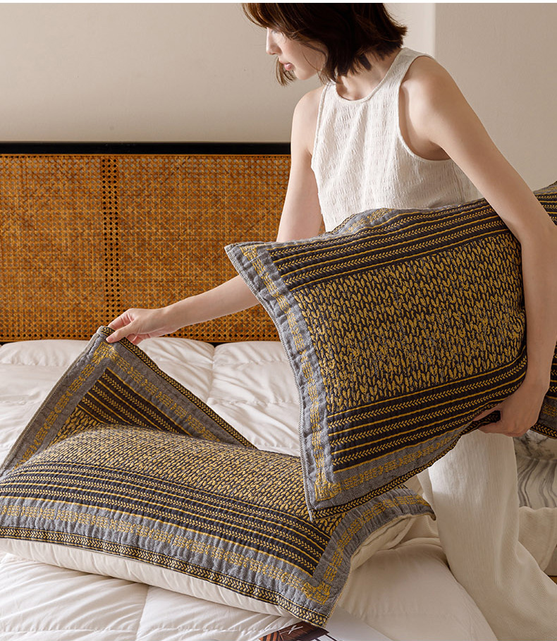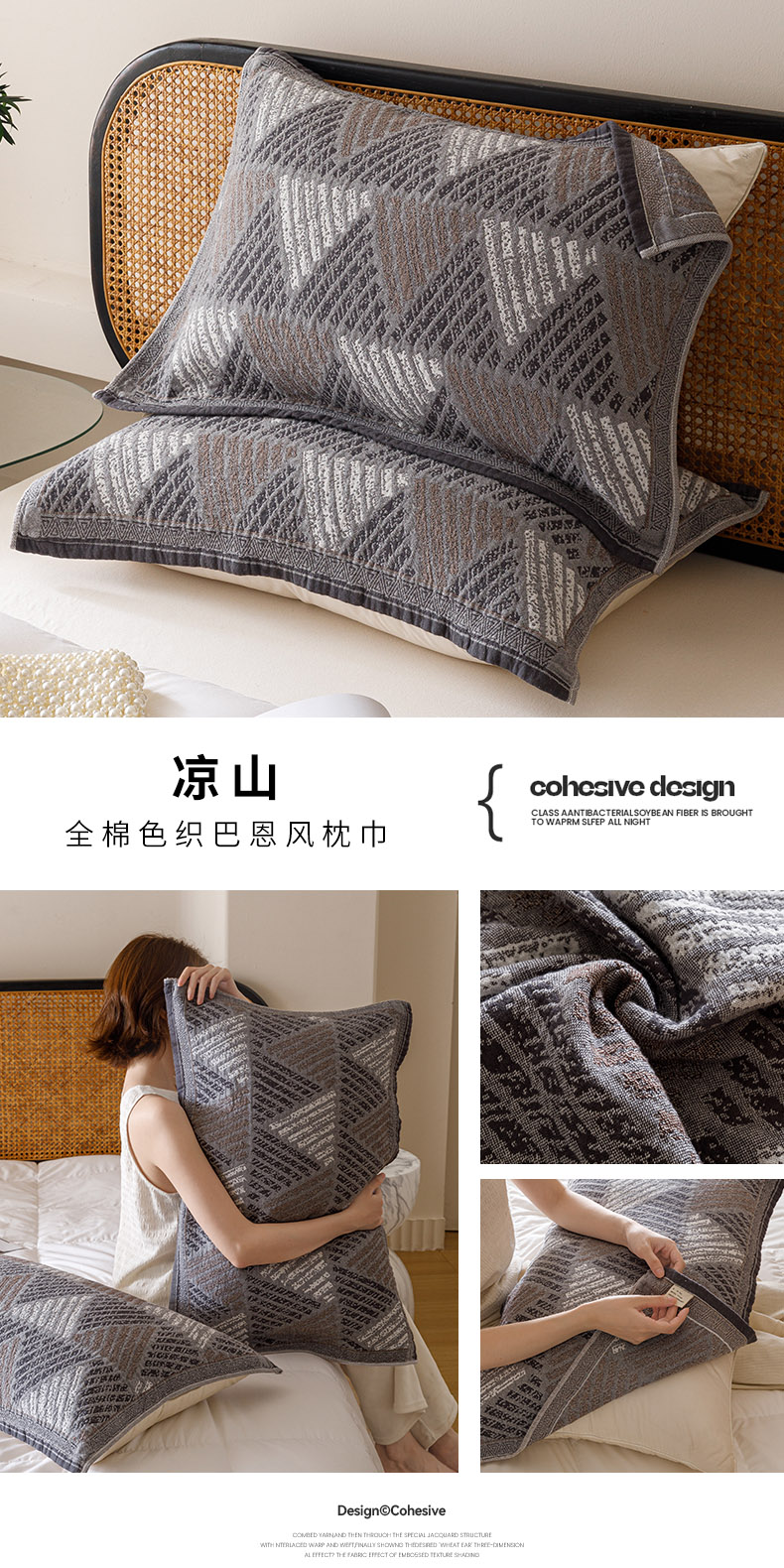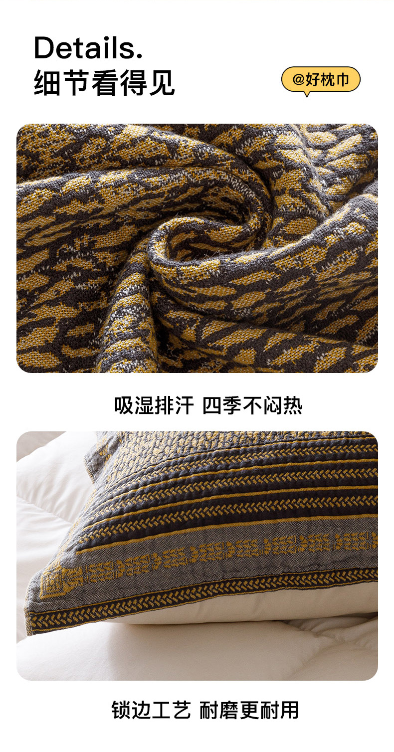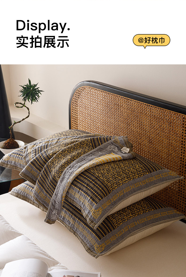 爱港家纺 2025新款全棉巴恩风纱布枕巾 隔热 耐脏,防滑 麦城