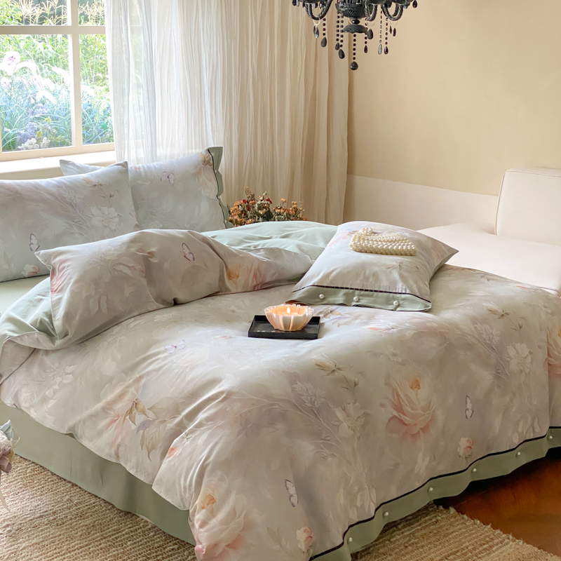 (总)薏思家纺 2025新款全棉100支数码印花生态磨毛轻奢款四件套-珍珠纽扣系列,花弄影-青,花弄影-玉,花弄影-紫,紫纱春日