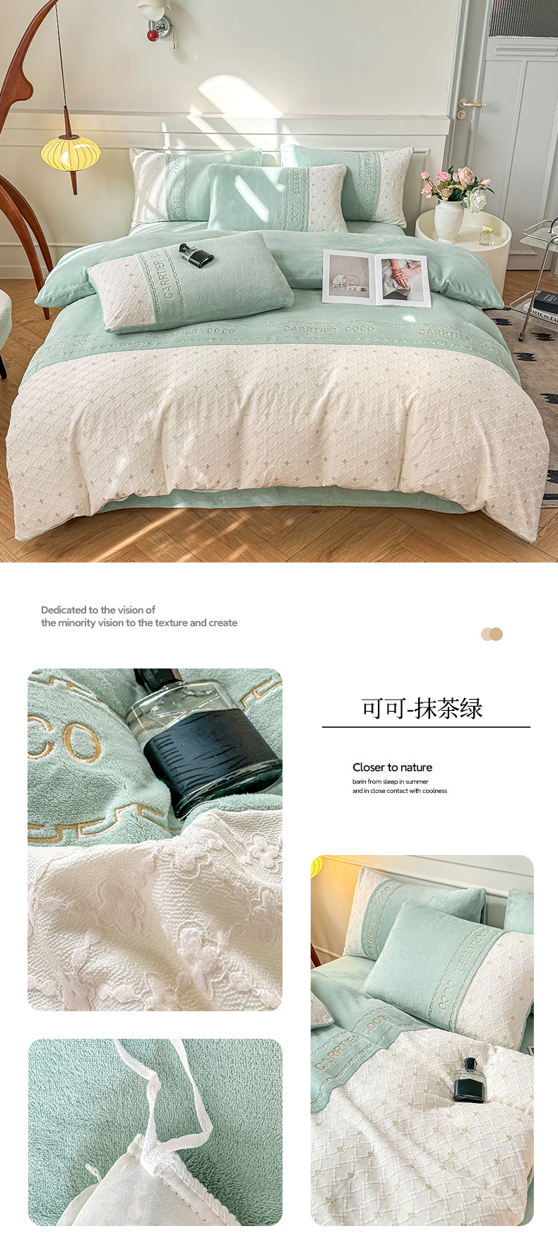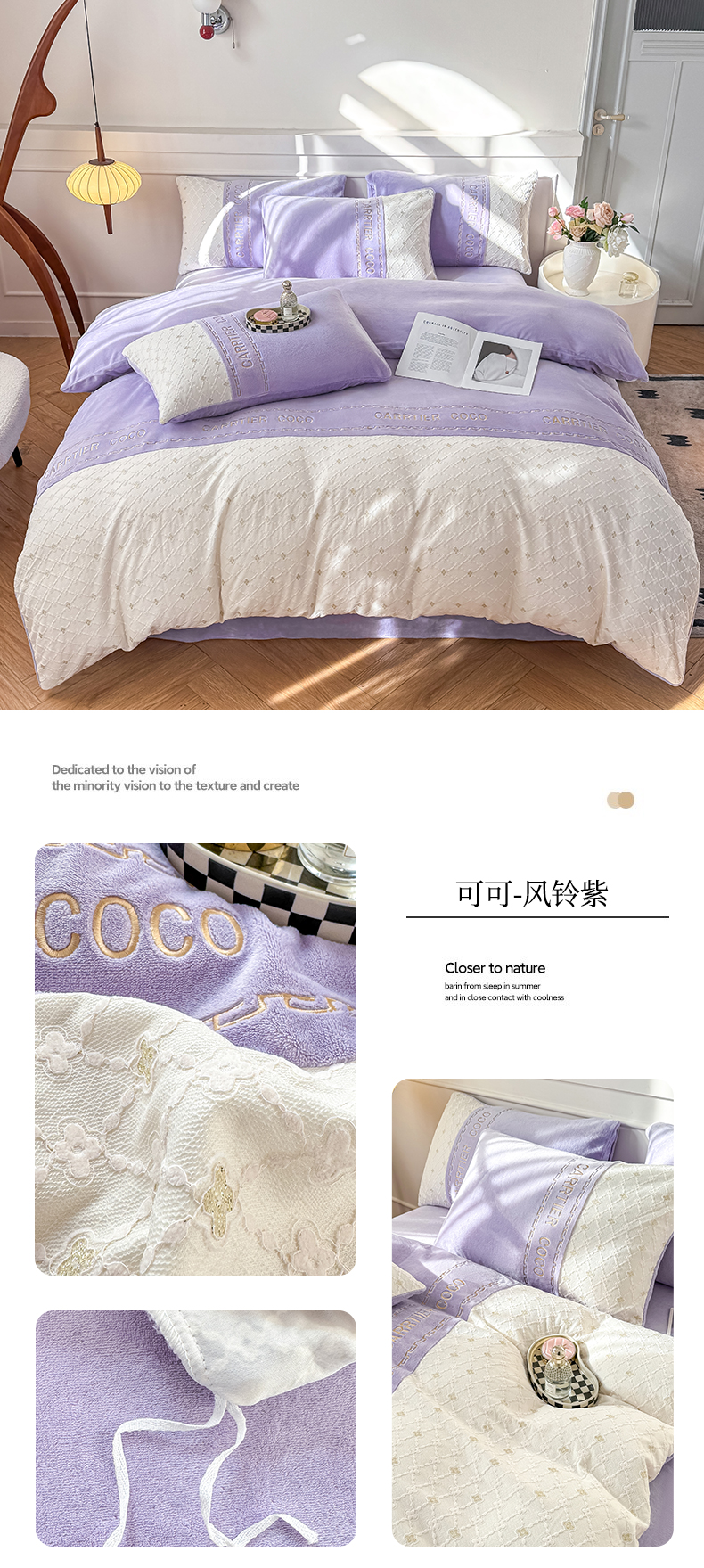 当前位置: 91家纺网 > 商品网购 > 床品套件 > 四件套 > 牛奶绒四件套 > 灰鲸 2025新款牛奶绒拼接刺绣雕花四件套-可可 可可-绅士灰