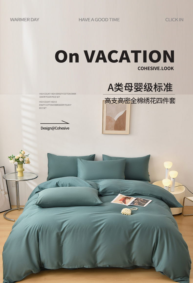 当前位置: 91家纺网 > 商品网购 > 床品套件 > 四件套 > 全棉普通四件套 > 宇彬家纺 2026直播热爆新款A类13374全棉一字绣纯色四件套贡缎新疆长绒匹马棉可定做 眠系列-摩卡绿