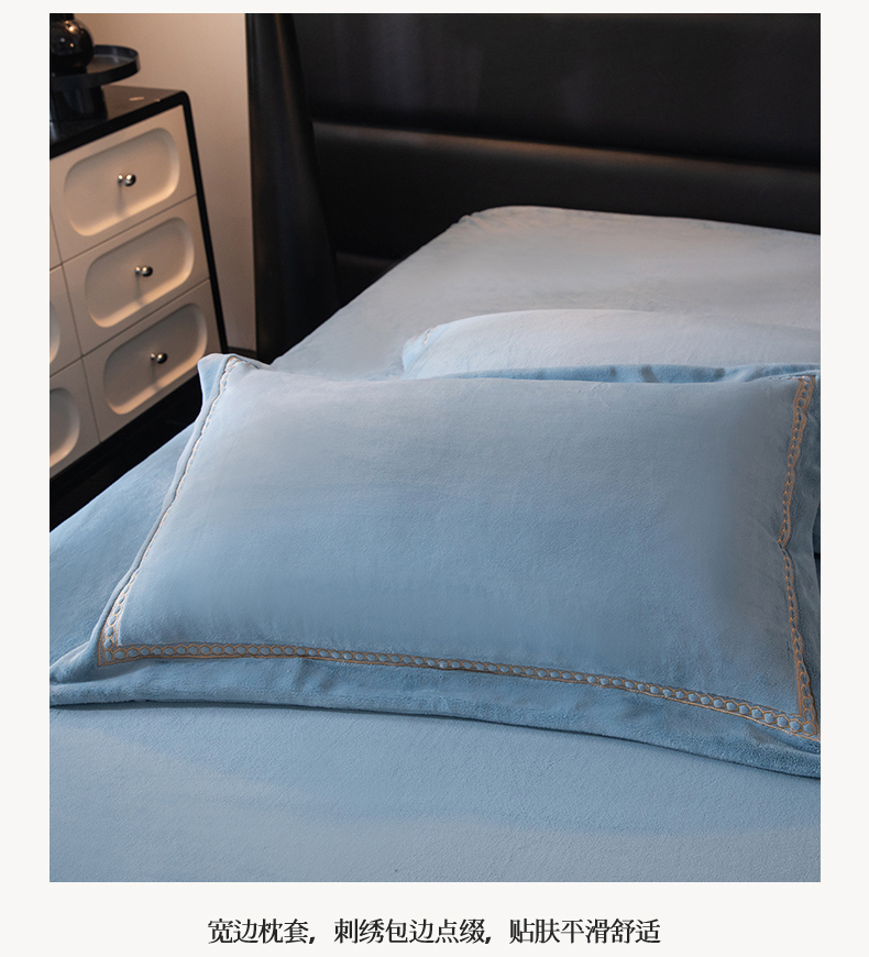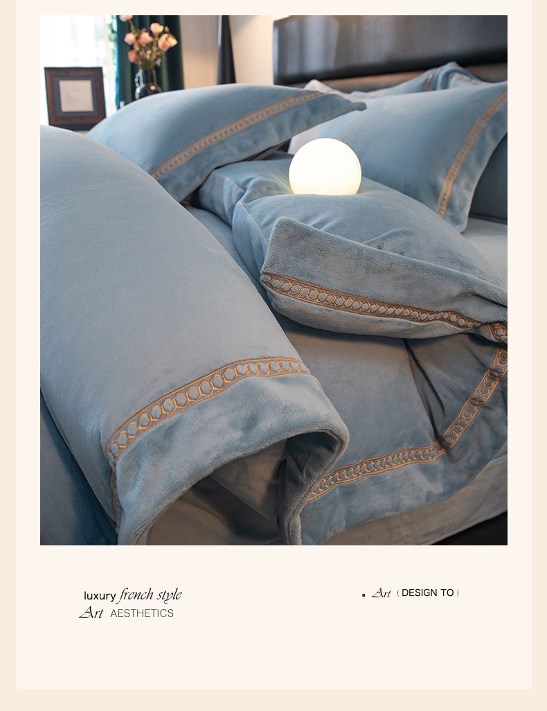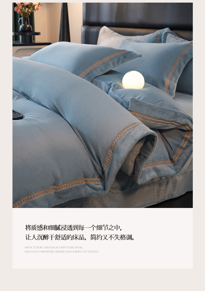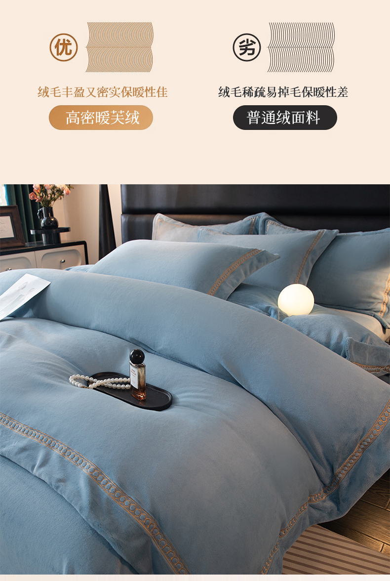 商品名称:暖洋家纺 2025新款暖芙绒纯色刺绣款套件四件套 蓝灰